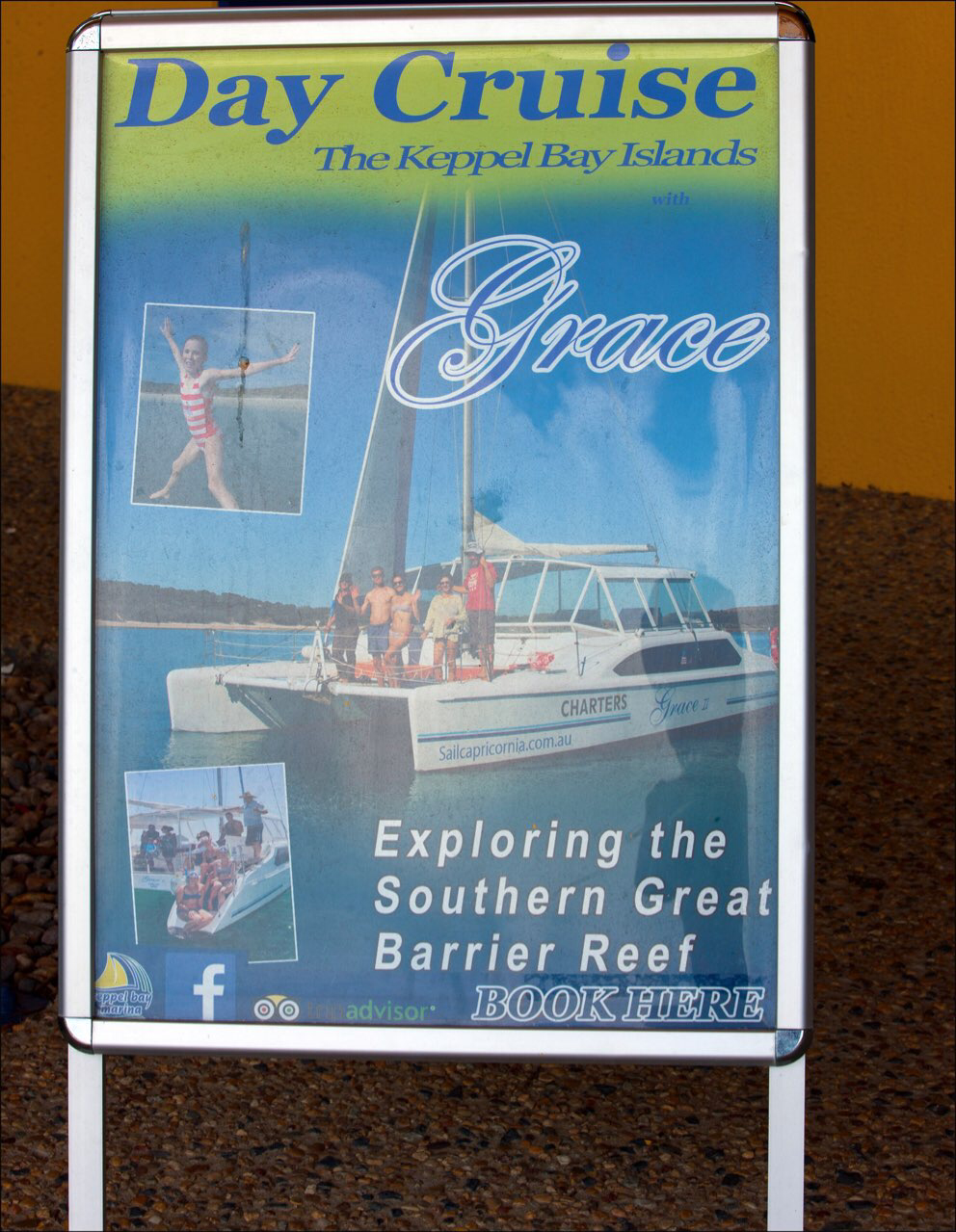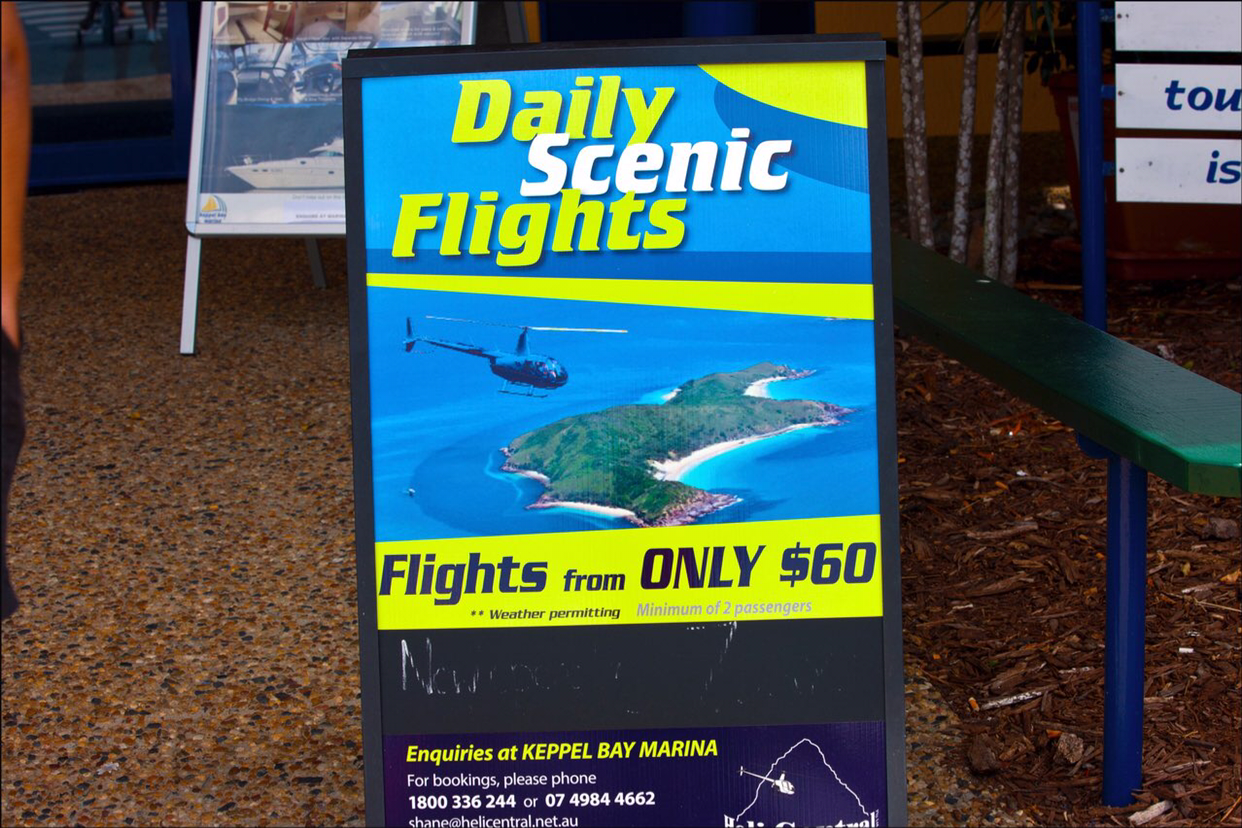 Marina 사무실에 들어가서 배편을 알아보니 바로 앞에 있는 섬인 Great Keppel Island로 가는 크루즈배가 떠나고 없다고 한다. 하루에 1편으로 아침 일찍 출발했다고 한다. 그 때만해도 어느 섬이던지 근처 섬으로 건너가면 대산호초를 구경할 수 있다고 생각했기에 일단 섬으로 건너가는 것이 중요하다고 생각했다. 다음 대안이 헬기를 타고 섬으로 건너 가는 방법인데 요금이 거의 300불 부른다. 그래도 섬에 가면 대산호초를 볼 수 있겠거니하고 300불에 흥정을 하고 간단하게 짐을 챙겨 사무실로 가보니 오늘은 헬기 조종사가 일이 있어 헬기를 뛰울 수가 없다고 한다. 망연자실하고 사무실에 죽치고 있는데 여직원 한 명이 어디에 전화를 걸어보고 하는 말이 자기 아는 사람이 오후에 섬으로 낚시하러 가는데 태워줄 수 있다고 개스비 조금만 주면 될 것이라고 갈련지 물어본다. 횡재라 하기전에 전혀 다른 대안이 없는 상황에서 나온 궁여지책이다보니 이보다 더 좋은 것이 어디 있을까. 크루즈 배를 타도 인당