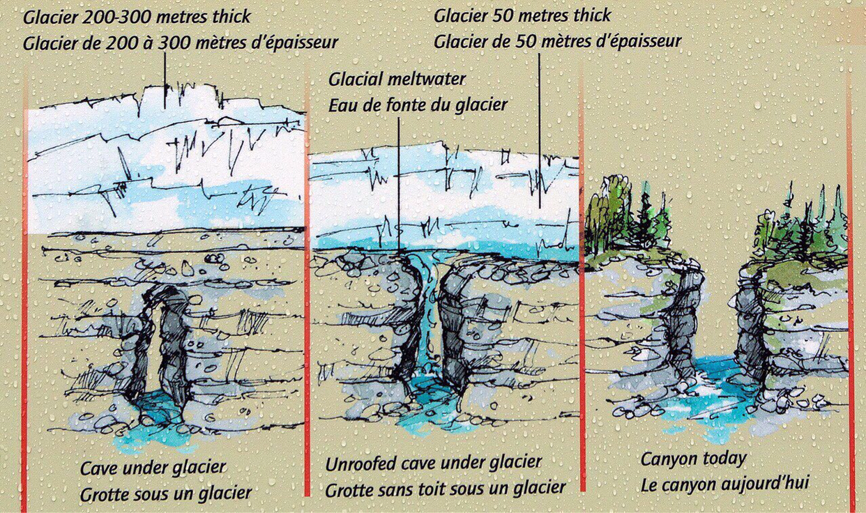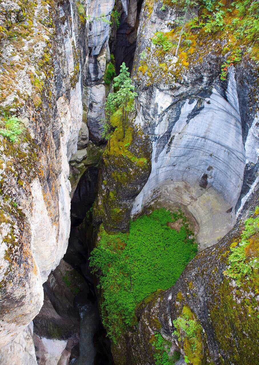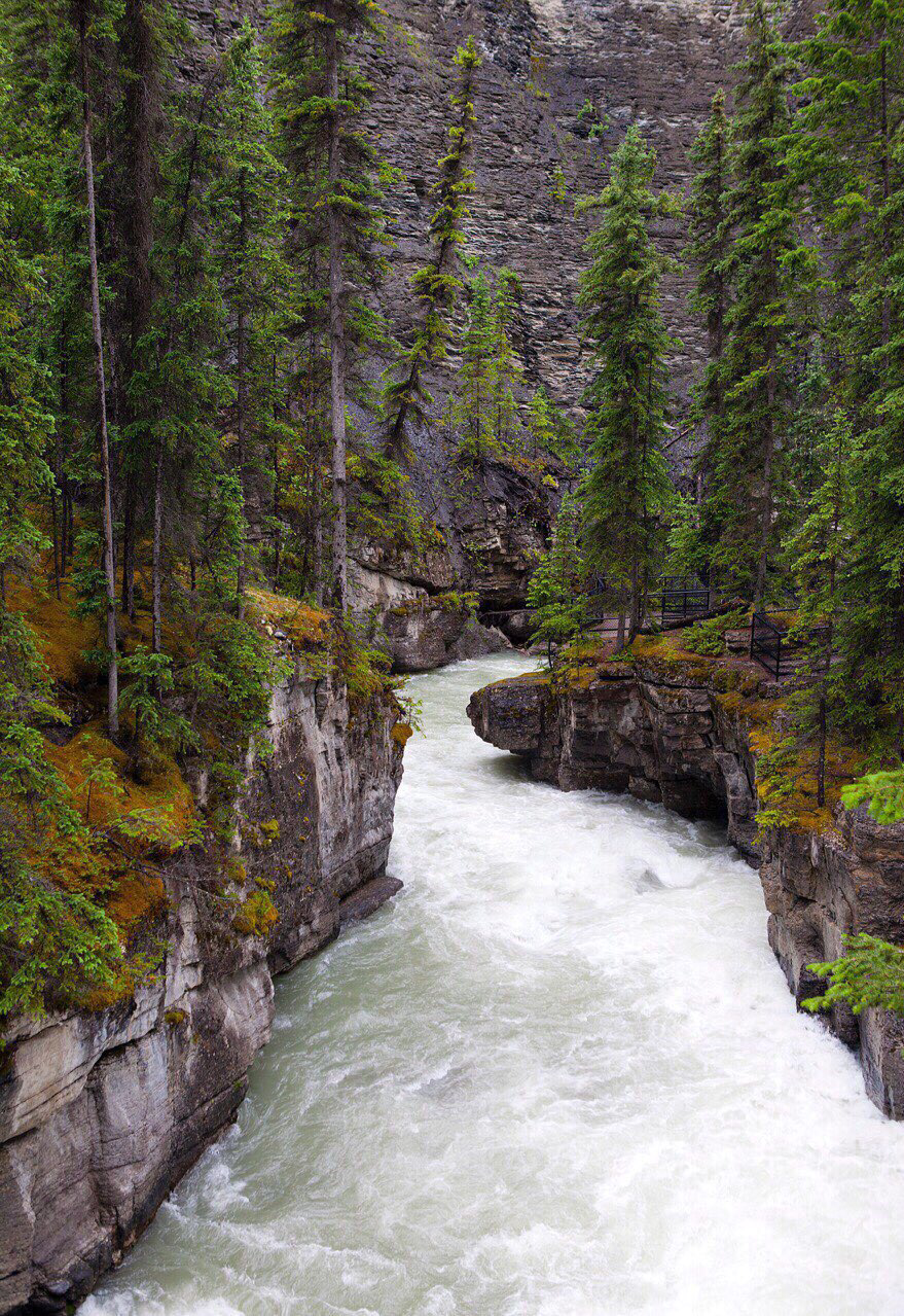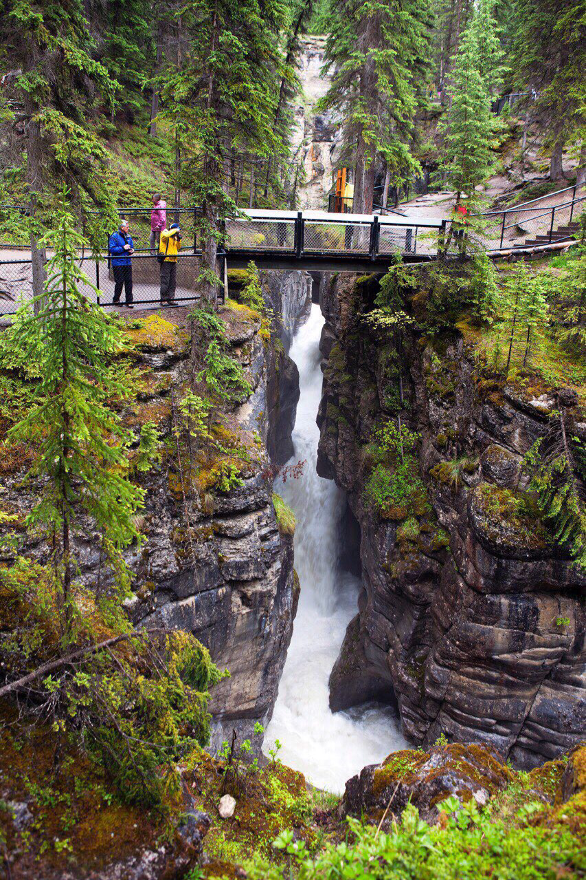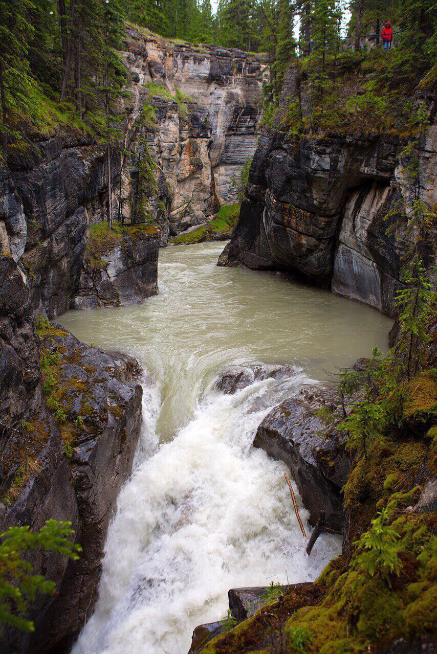 캐나다 록키마운틴에 있는 여러 협곡 중에서 가장 경치가 뛰어난 협곡으로 많은 사람들이 찾는다. 애서배스카강 본류에서 갈라져 나온 말린강의 급류에 파인 석회암 바위들이 다양한 모습을 보여준다. 군데군데 협곡사이를 연결한 다리가 총 6개 있는데 이거 다 돌아보는데 총 3시간 이상 걸린다. 그래서 보통 3번째 다리까지 보고 돌아 오는데 40분정도 걸린다. 그래도 우리도 4번째 다리까지 보고 돌아왔다. 한시간 이상 걸렸다. 제일 낙차가 큰 폭포는 두번째 다리 위에서 조망할 수 있다.