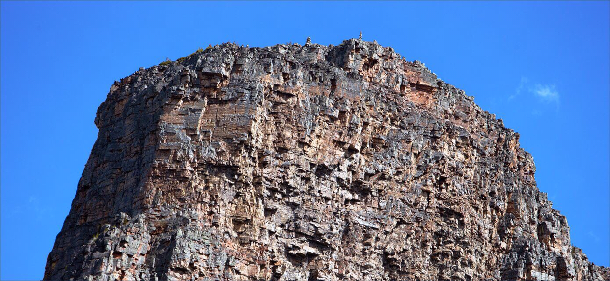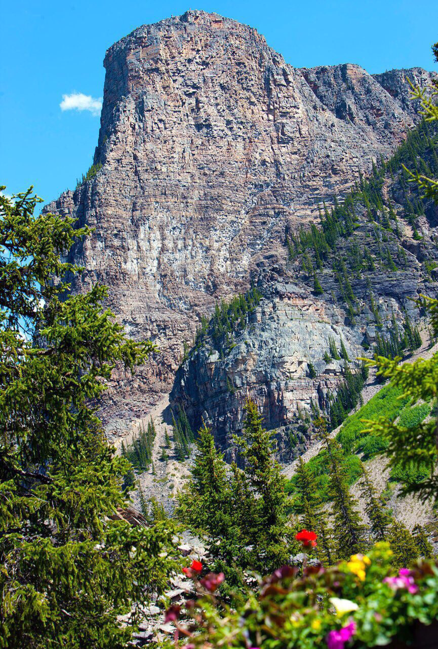 모레인 호수 옆으로 솟아 오른 돌산의 상층부 맨 꼭대기를 망원렌즈로 확대해보니 모진 풍상에 견뎌낸 조그마한 돌탑의 모양새가 마치 사람손으로 쌓아 올린 것처럼 기묘하다. 억만년의 세월을 거치면서 조물주가 손수 만든 불후의 명작이라 할 만 하다. -JH-