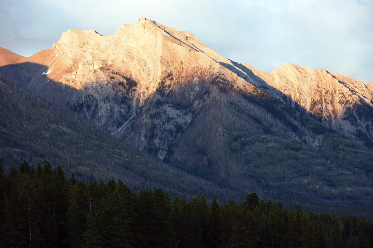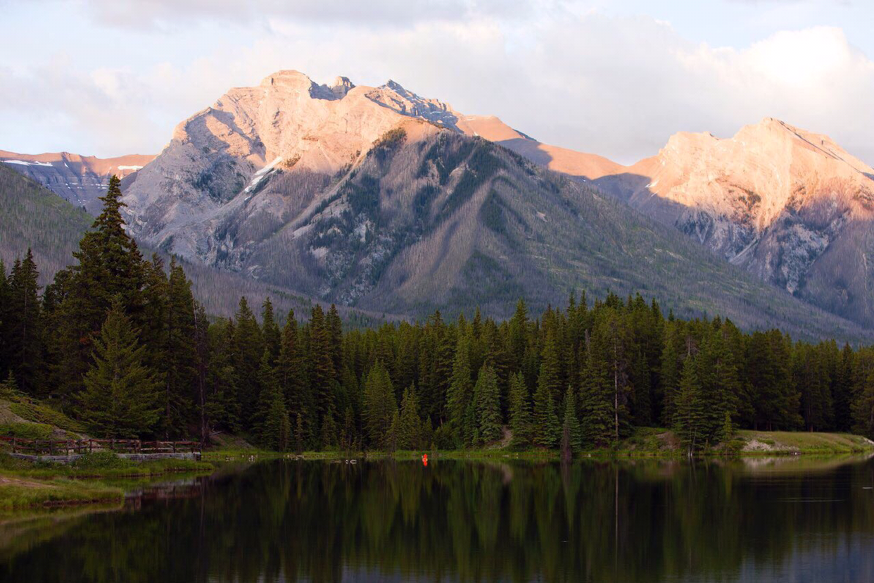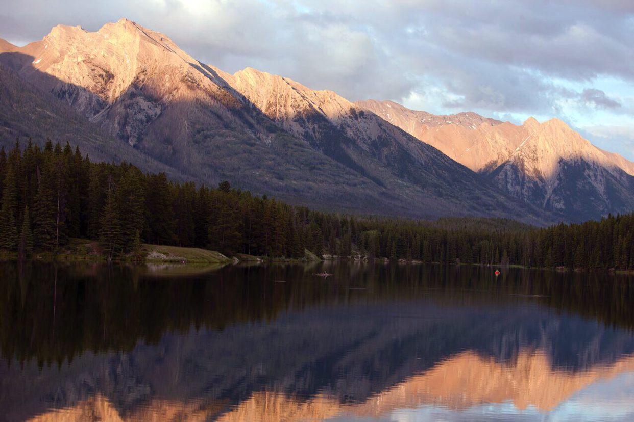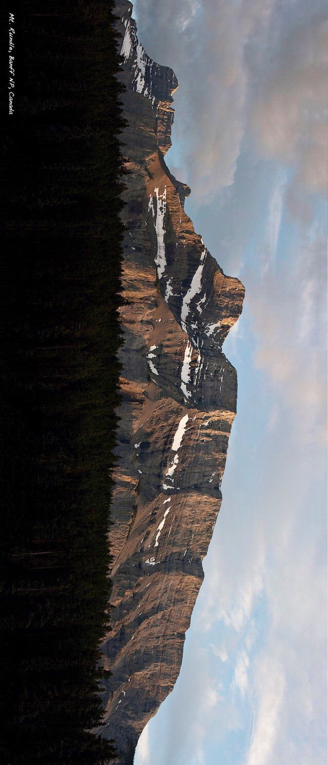 때마침 존슨 호수뒤로 보이는 돌산 Rundle Mt.(2948m) 도 석양빛을 받아 누렇게 변해가고 있어 카메라에 담았다. 산 정상이 밋밋하게 생긴게 칼로 산꼭대기를 댕강 베어낸 것 같고 산허리춤에는 아직 녹지않은 빙하 자국이 있다. 존슨 호수의 뒷산도 산정상부분은 떨어지는 석양빛에 누렇게 물들어 가고 있어 사진 몇 장을 찍었다. 우리말고는 아무도 없어 자연 전체를 몽땅 전세낸 것처럼 고즈넉하다. 호수 주변을 그냥 걸어 다니다가 날이 더 어둡기 전에 캠핑차로 돌아왔다.