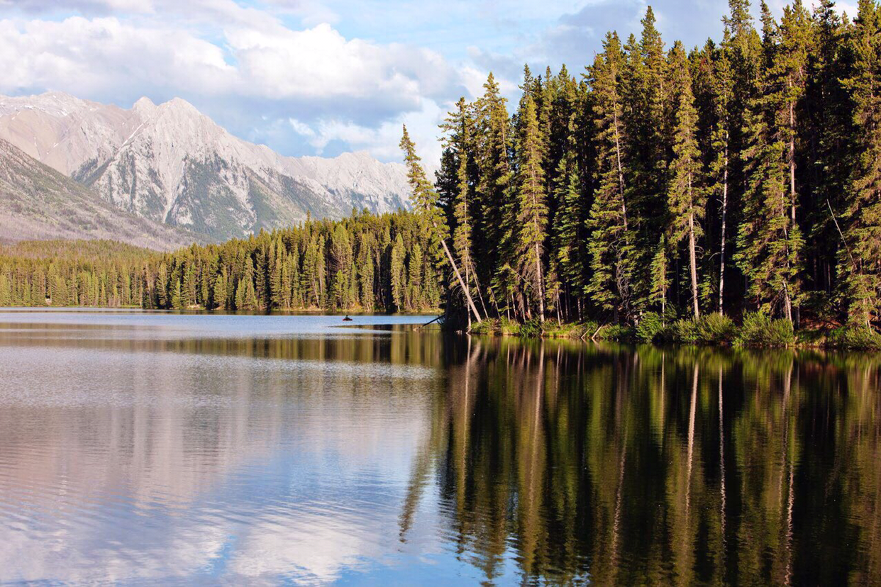 지도에서처럼 밴프타운에서 멀지 않은 곳에 있다. Bow Valley Pkwy를 타고 내려가다보면 Pkwy가 끝나고 캐나다 국도로 바뀌는데 이를 타고 조그만 더 내려가면 호수로 들어가는 사인판이 나온다. 별로 크지 않은 호수로 길이는 약 1.1km 폭은 0.2km 정도로 작은 호수이다. 사실 그리 유명한 호수도 아니기 때문에 시간이 없는 경우에는 그냥 Pass 해도 된다. 우리가 호수로 간 시간이 거의 해가 질 시간에 갔기 때문에 소위 사진하는 사람들에게 Golden Time이라고 말하는 그런 시간대로 멋있는 사진찍기에는 좋은 시간이었다.