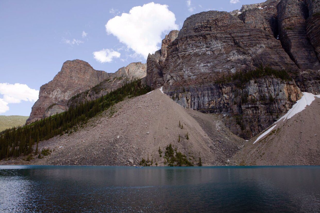 모레인 호수는 루이스 호수 남쪽으로 약 10km 떨어진 곳에 있어 찾아 가기도 수월하다. 영어 Moraine의 뜻이 '빙하와 함께 떠밀려 내려온 퇴적물'인데 우리말 번역이 퇴사 또는 빙하퇴적물 그런 정도다. 호수 양쪽으로 그런 빙하퇴적물이 쌓여서 호수 이름을 그렇게 작명한 모양이다.