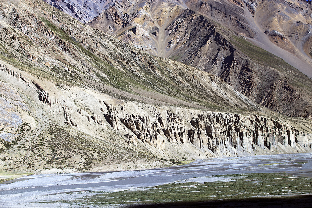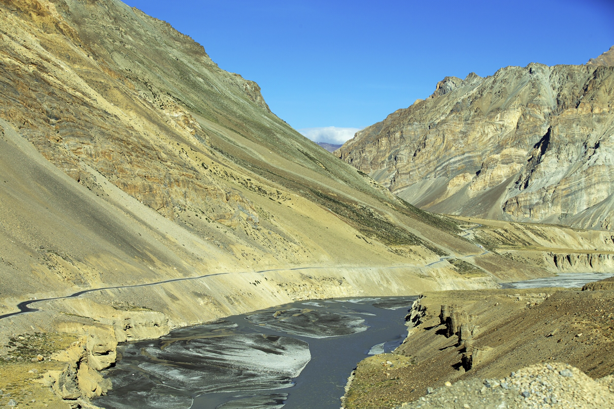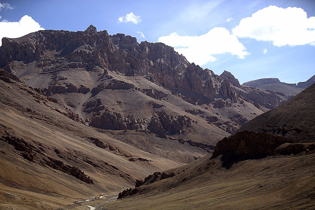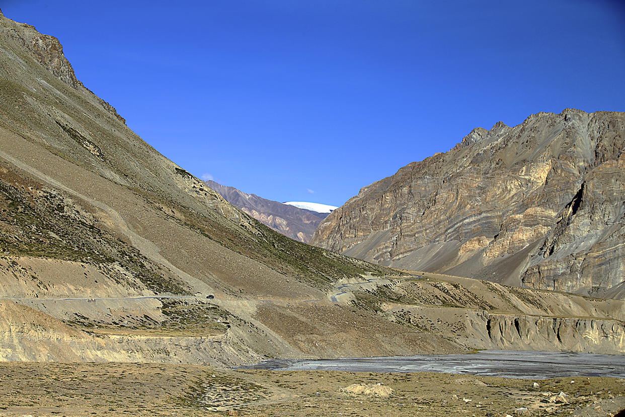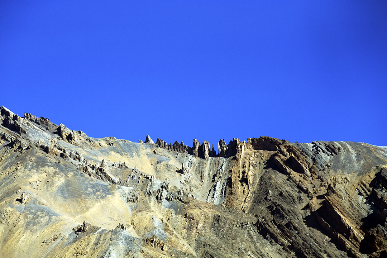 원시적 황량함과 태고적 아름다움을 함께 간직한 북인도 오지의 풍광밖에는 눈에 들어 오는 곳이 없는 그런 산속이다. 풀 한포기 자라지 않은 그런 벌거숭이 산들이지만 그래도 푸른 하늘아래에서는 거칠은 아름다움은 잃지않고 우뚝 솟아있다.