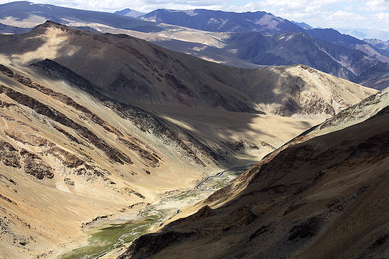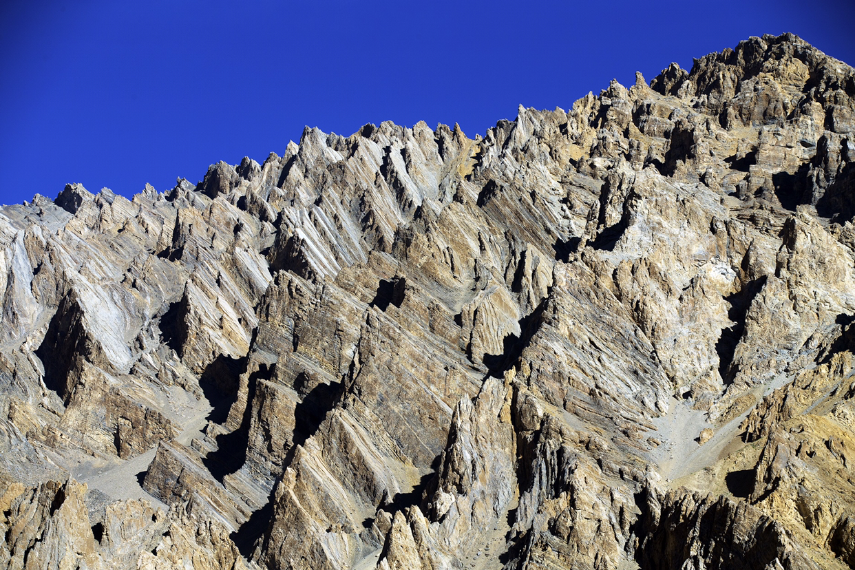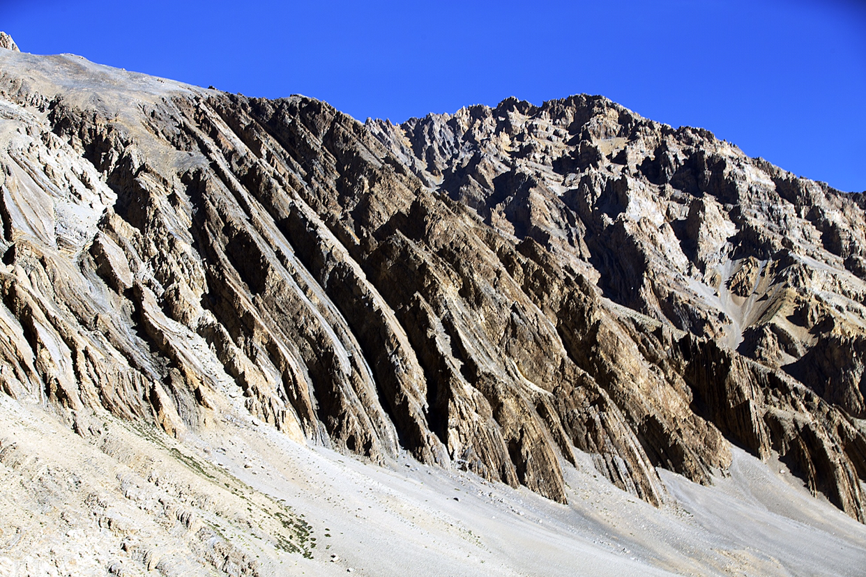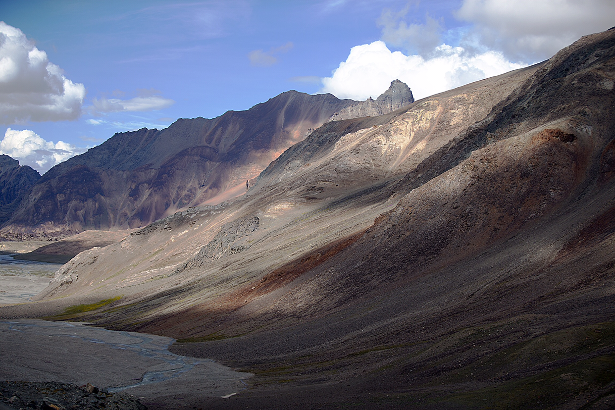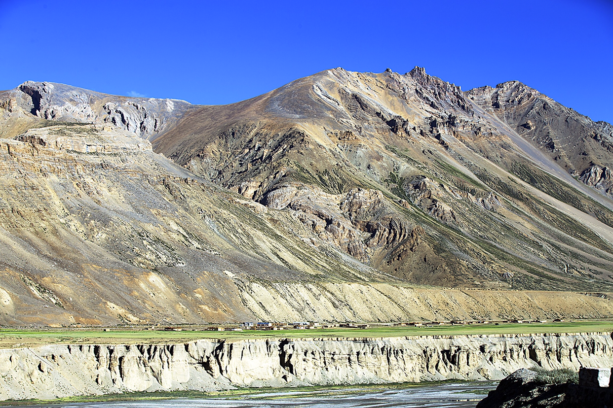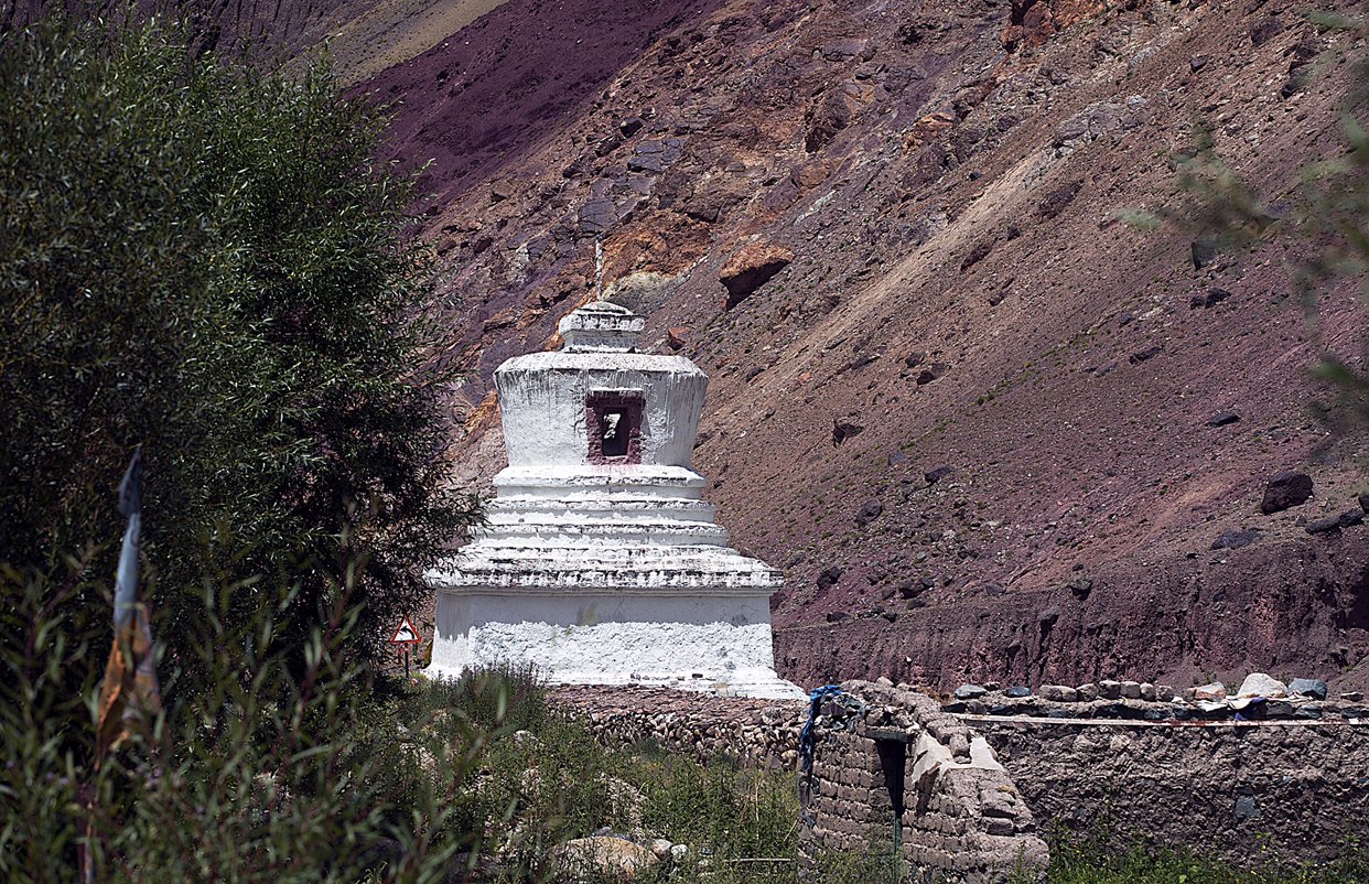 원시적 황량함과 태고적 아름다움을 함께 간직한 북인도 오지의 풍광밖에는 눈에 들어 오는 곳이 없는 그런 산속이다. 풀 한포기 자라지 않은 그런 벌거숭이 산들이지만 그래도 푸른 하늘아래에서는 거칠은 아름다움은 잃지않고 우뚝 솟아있다.