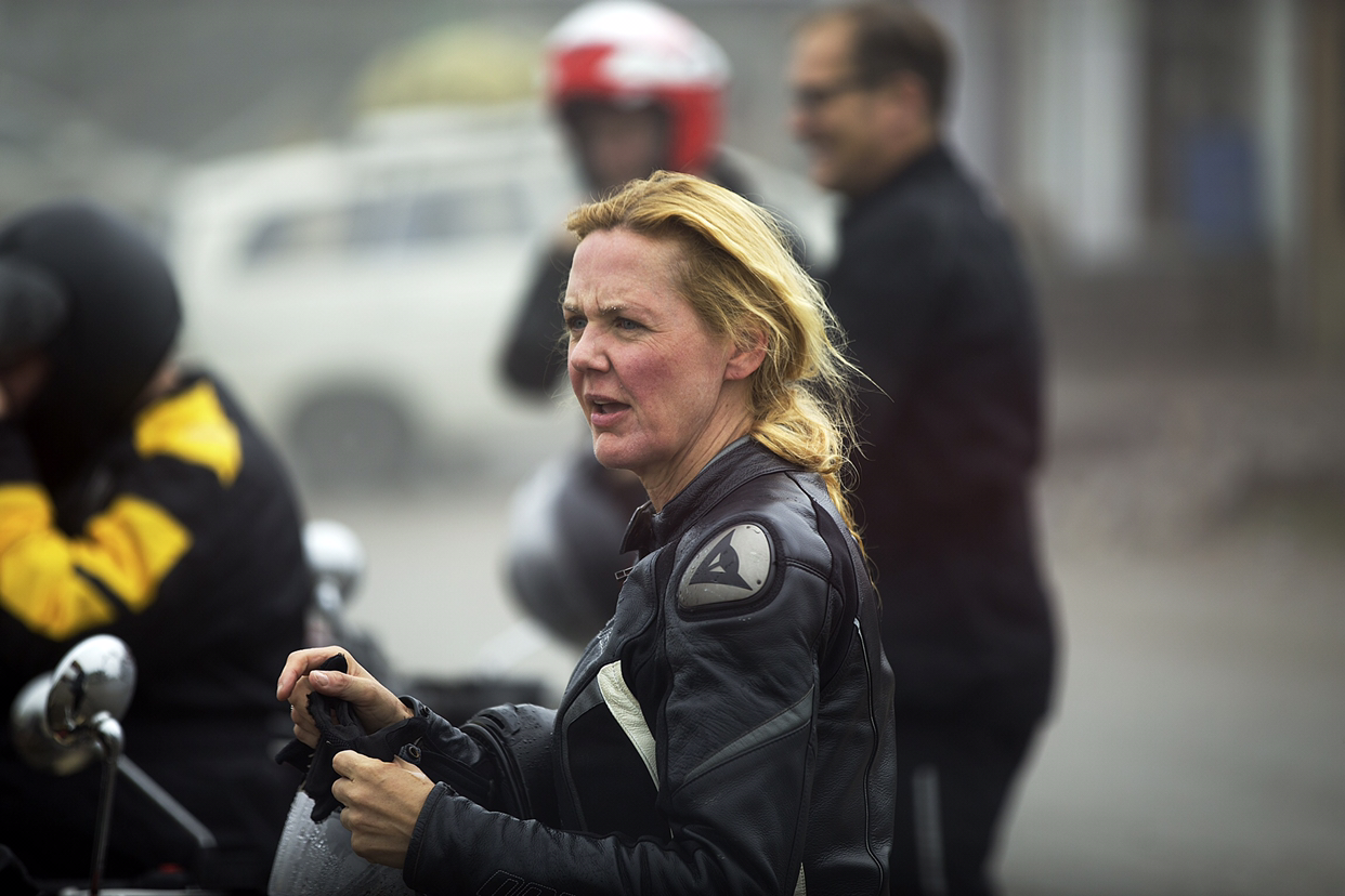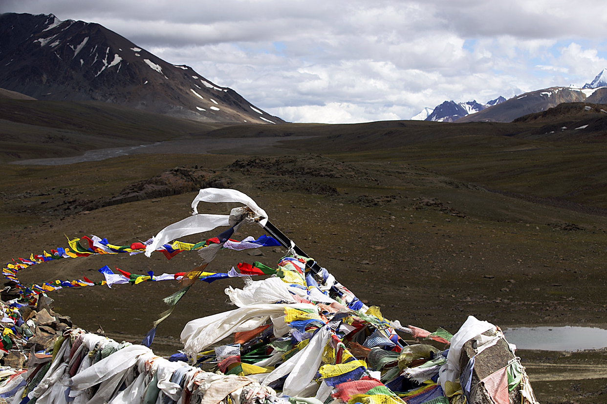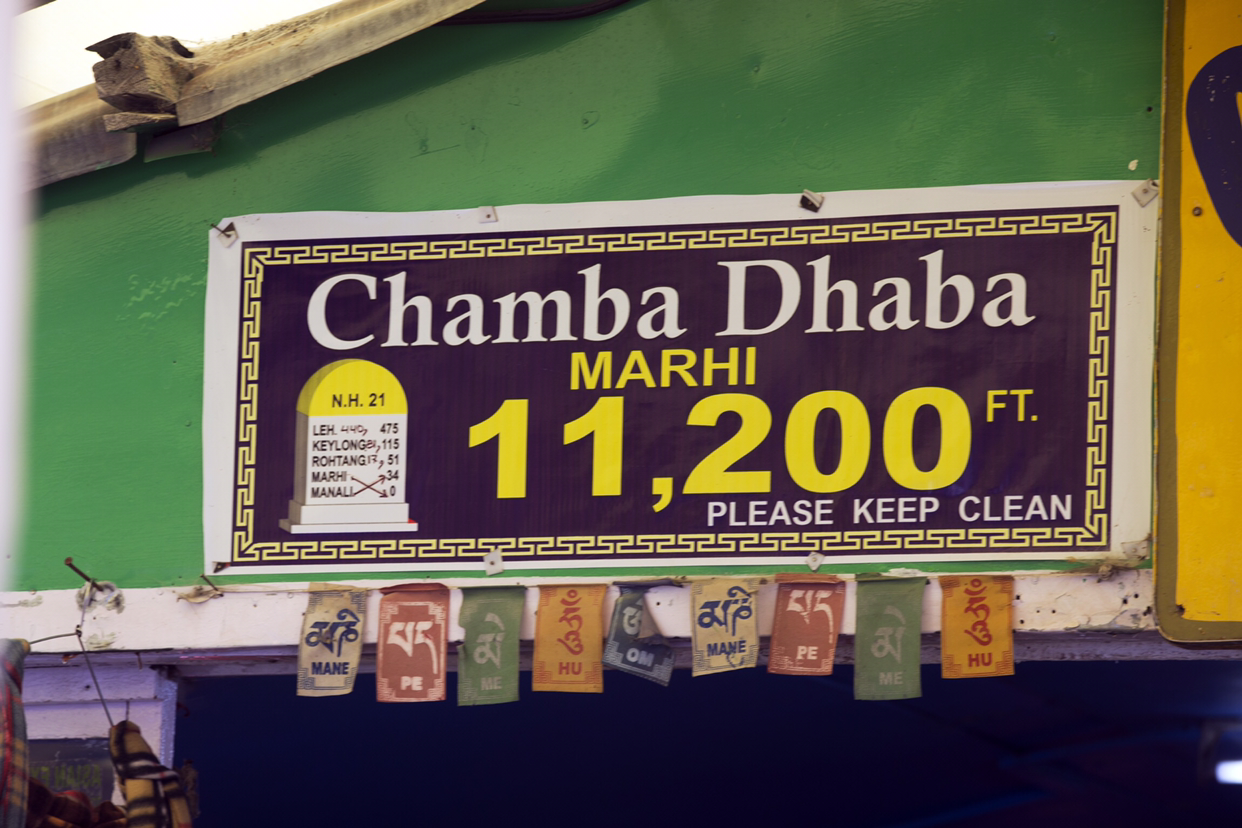마날리에서 34km 지점 고갯길 정상에서 잠시 화장실을 가기 위해 정차하였는데 지명이 Marhi로 고도가 11,200피트로 되어 있다. 미터로 환산하면 3675미터로 낮은 곳이 아니다. Chamba Dhaba가 무슨 말인지 물어보니 참바는 이 부근의 지명이고 다바는 휴게소 간이식당이라고 한다. 여기서 첨으로 티벳 여행길에서나 볼 수 있는 오색천으로 장식된 깃발인 다르촉을 볼 수 있었다. 티벳 특유의 양식 탑이나 다른 깃발장식도 볼 수 있었다. 마침 휴게소에서 쉬고 있을 때 굉장한 오토바이 엔진소리와 함께 서양인 한무리가 오토바이를 몰고 휴게소 앞에 정차하였다. 그 중에 금발의 중년 여성 rider가 있어 우리들의 눈길을 끌었다.