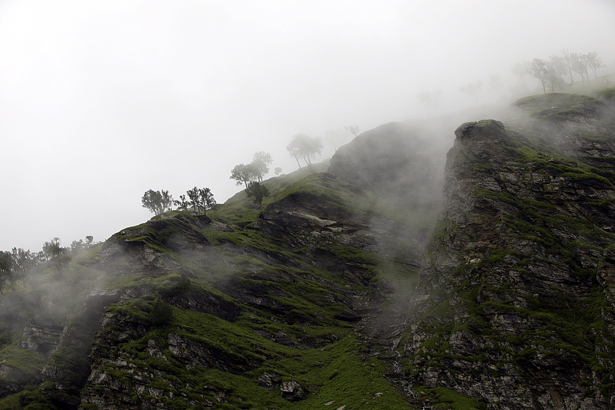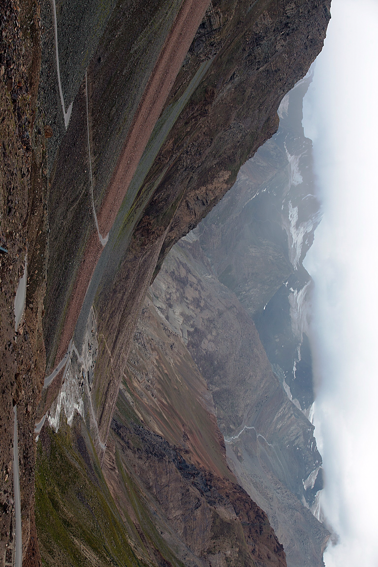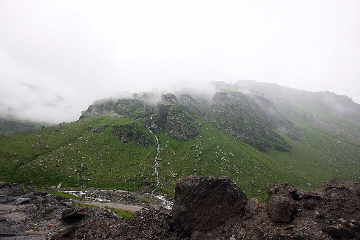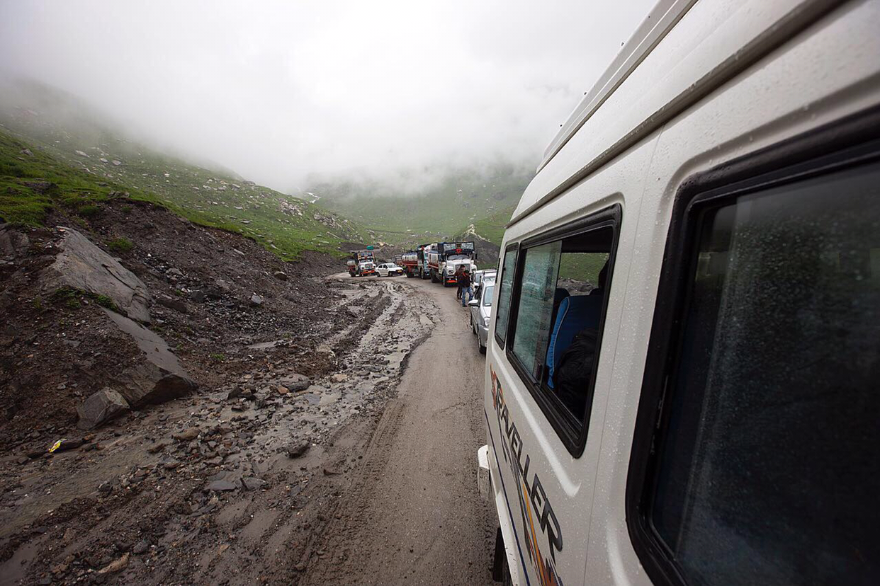 마날리에서 출발할 때도 비가 부슬부슬 내려 먼길을 떠나는 나그네의 마음을 촉촉하게 적셔 주었다. 마날리를 벗어나자 우리가 탄 소형버스는 산길로 서서히 고도를 높이기 시작하였다. 마날리가 해발 2050m에 위치하기 때문에 더 높은 산으로 올라가는 형세이다. 오지의 이렇게 험하고 얄궂은 도로는 처음인 것 같다. 오지라면 남미의 안데스산맥이나 호주의 Outback이나 아프리카의 사막같은 길들을 다녀 보았지만 이런 길은 아니었다. 미국서 살면서 다녀본 험한 산길은 로키산맥이 남북으로 관통하는 콜로라도주의 로키산을 겨울에 자동차로 넘을 때 힘들었던 기억이 있다. 산허리로 난 도로가 나사의 홈처럼 그렇게 완만하게 빙빙 돌아가지만 그래도 나사 홈과 홈 사이는 그렇게 촘촘하지는 않았고 도로폭도 엄치 넓었고 위험한 구간에는 튼튼한 가드레일이 설치되어있어 안심mode가 되었지만 여기 산길도로는 그렇지 않다. 일단 도로폭이 너무 좁다.그래도 대형 트럭과 버스가 마주보고 무사하게 지나가는 걸 보고 그들의 운전솜씨에 경탄했다.
