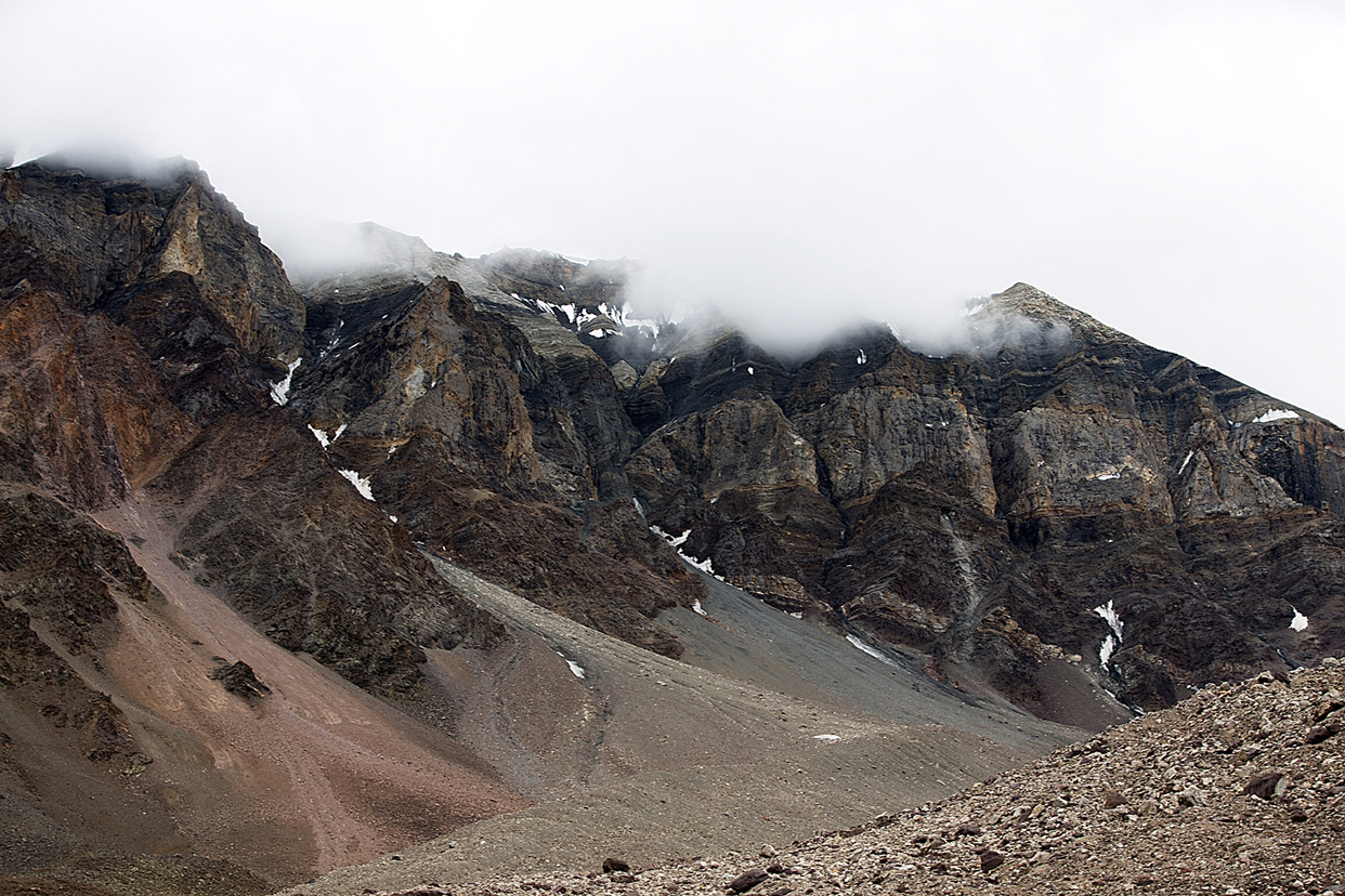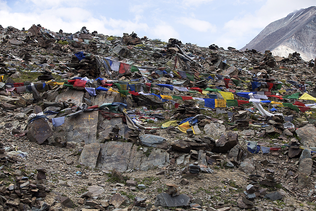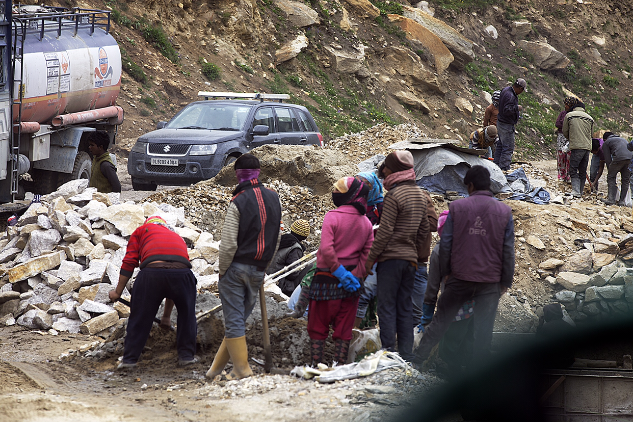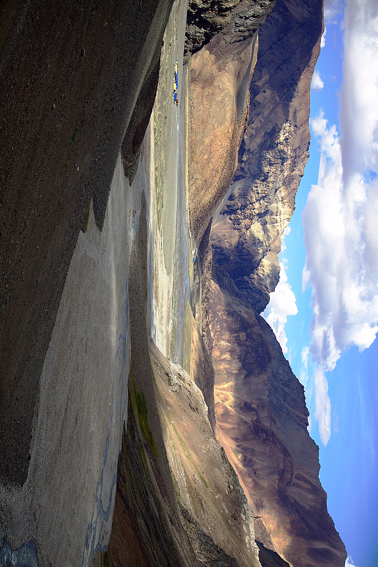 해발 4890m의 바라라차는 사추(Sarchu)로 가는 길에서 가장 높은곳에 위치해서 대부분 사람들이 고산증세를 보이는 곳이라고 한다. 아침에 출발하기 전에 모델 K가 한국에서 가져온 멀미약을 먹었다. 그래서 그런지 머리는 아프지 않았지만 사진찍을 때는 무척 힘이 들었다. 사진기 샤터누르는 것이 군대에서 M-16 실사격 연습하는 것과 유사하다. 둘 다 목표물을 조준해서 셔터나 방아쇠를 누르거나 당길 때 일시적으로 호흡을 멈춰야 한다. 그렇지 않으면 조준이 틀려지게 되어 훌륭한 사격선수나 카메라맨이 될 수 없기 때문이다. 숨을 연달아 쉬어도 부족할 판인데 샤터를 눌릴 때마다 호흡을 멈춰야 한다는 것이 사람을 제대로 길위에 서 있기 조차 힘들게 하였다. 결국 피로도를 줄이는 방법으로 쪼그려쏴 자세로 사진을 몇장 찍었다.