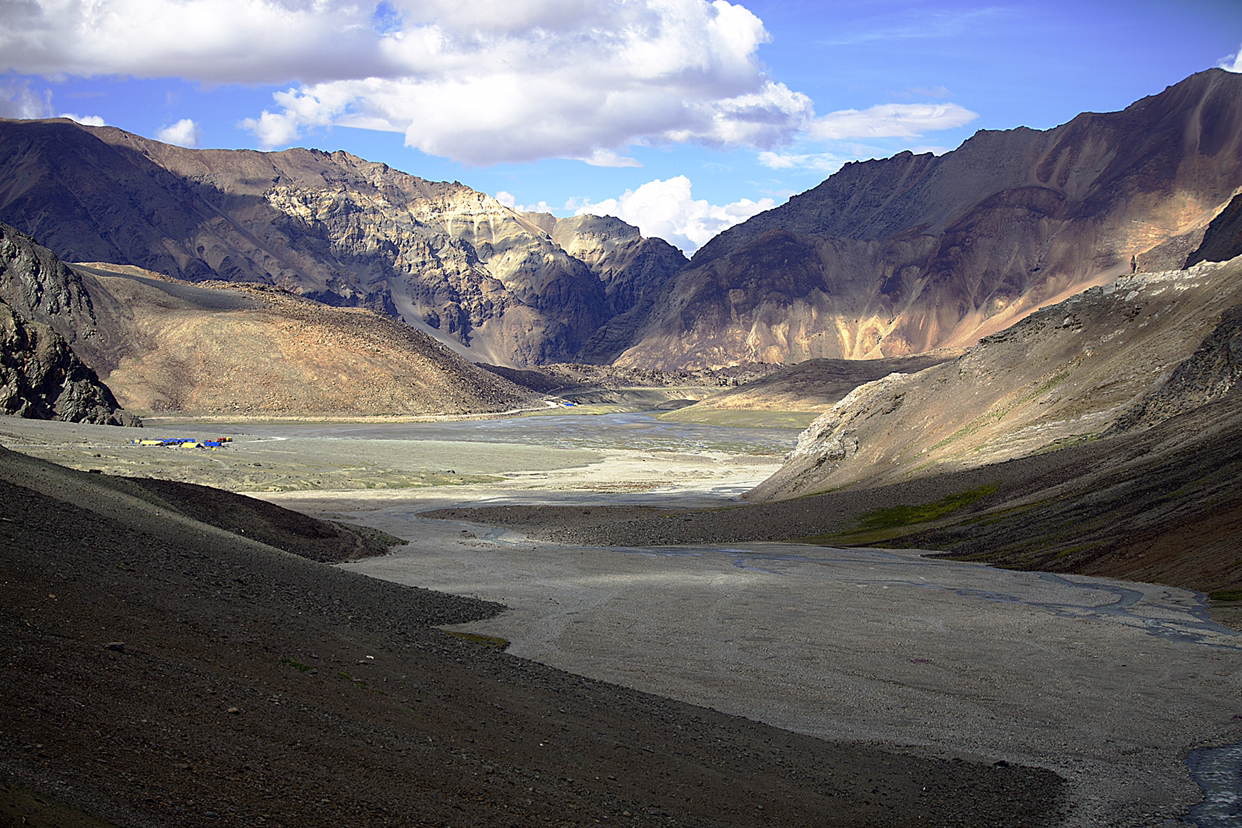 나의 업보(Karma)를 갚기위해 또 다른 고행을 버터 내기로 마음먹고 오늘도 하루종일 물만으로 연명하며 깊은 산중으로 들어왔다. 그래도 어제 오후부터 복용한 현지 감기약과 지사제가 효과가 있어 오늘 내내 차를 타고 오면서도 자연이 나를 부르지 않았다.( Nature didn't call me를 그대로 풀어 적었다. Nature calls me는 생리현상을 해결하기 위하여 화장실간다는 말이다) 일단 위아래로 흐물흐물한 물이나 유색액체가 나오지 않으니까 뱃속이 안정되어 요동치지 않으니 그것만으로도 살만해서 배고픔은 전혀 문제되지 않았다. 풍광좋은 경치를 보다가 말다가 하다가 텐트호텔이 있는 사추(Sarchu)에 도착해서 텐트를 배정받자 말자 바로 침대로 올라가서 죄많고 피곤한 육신을 뉘였다.