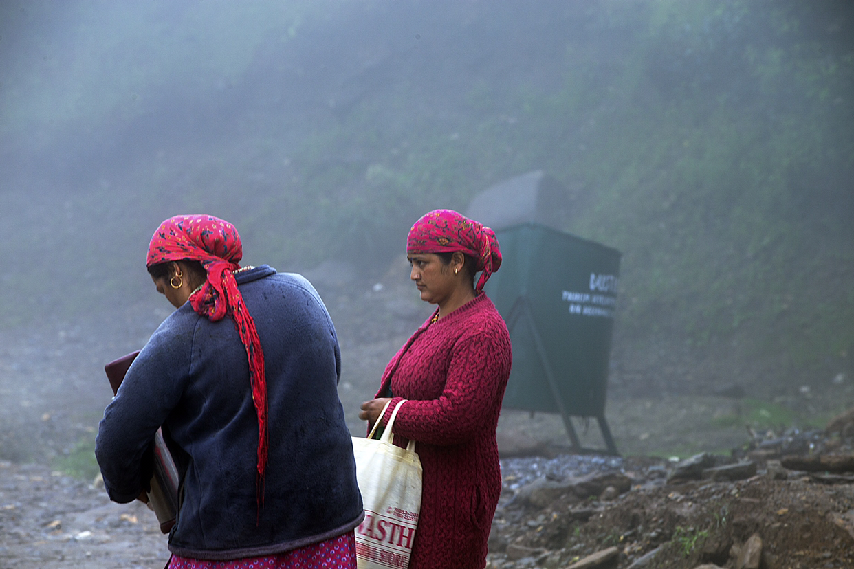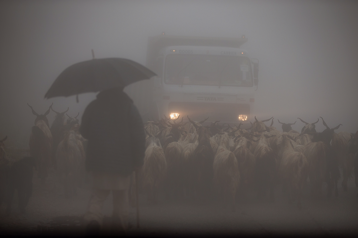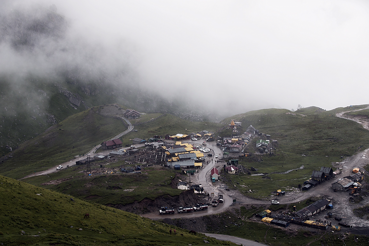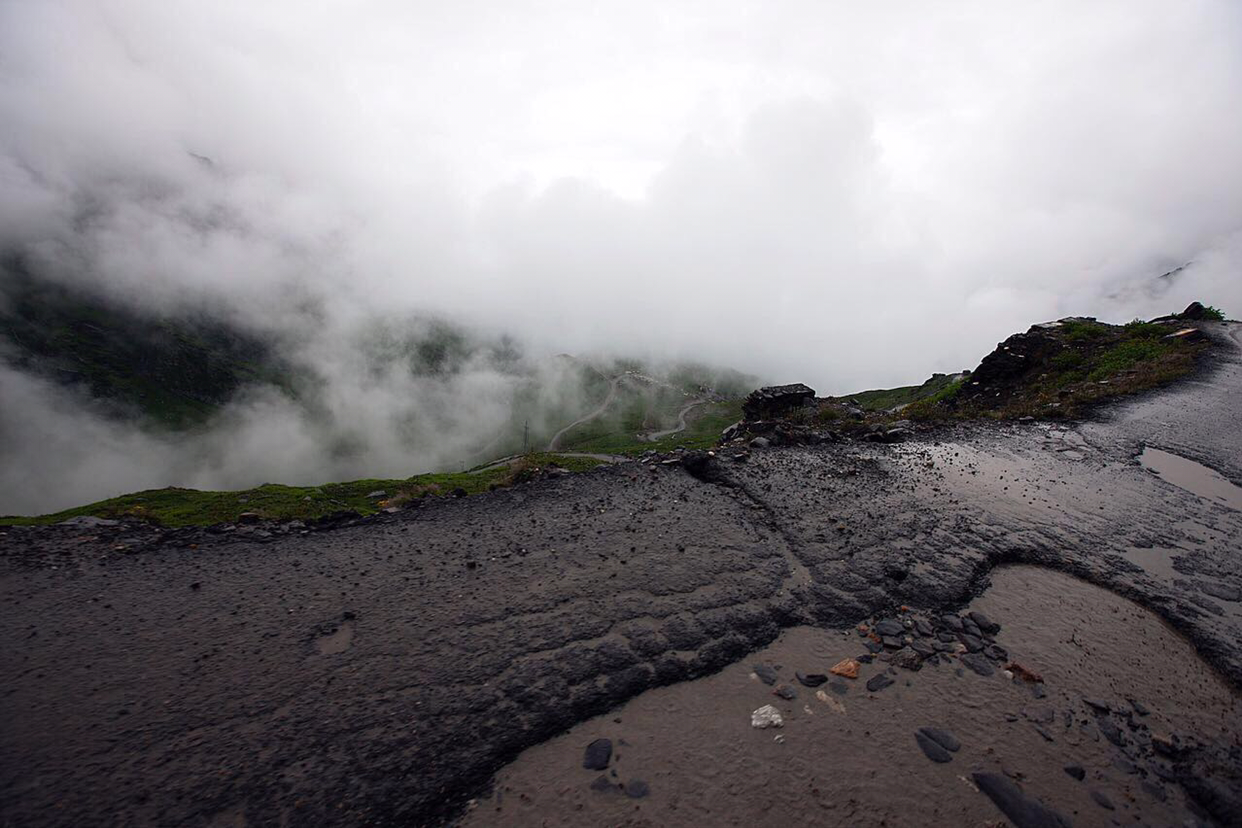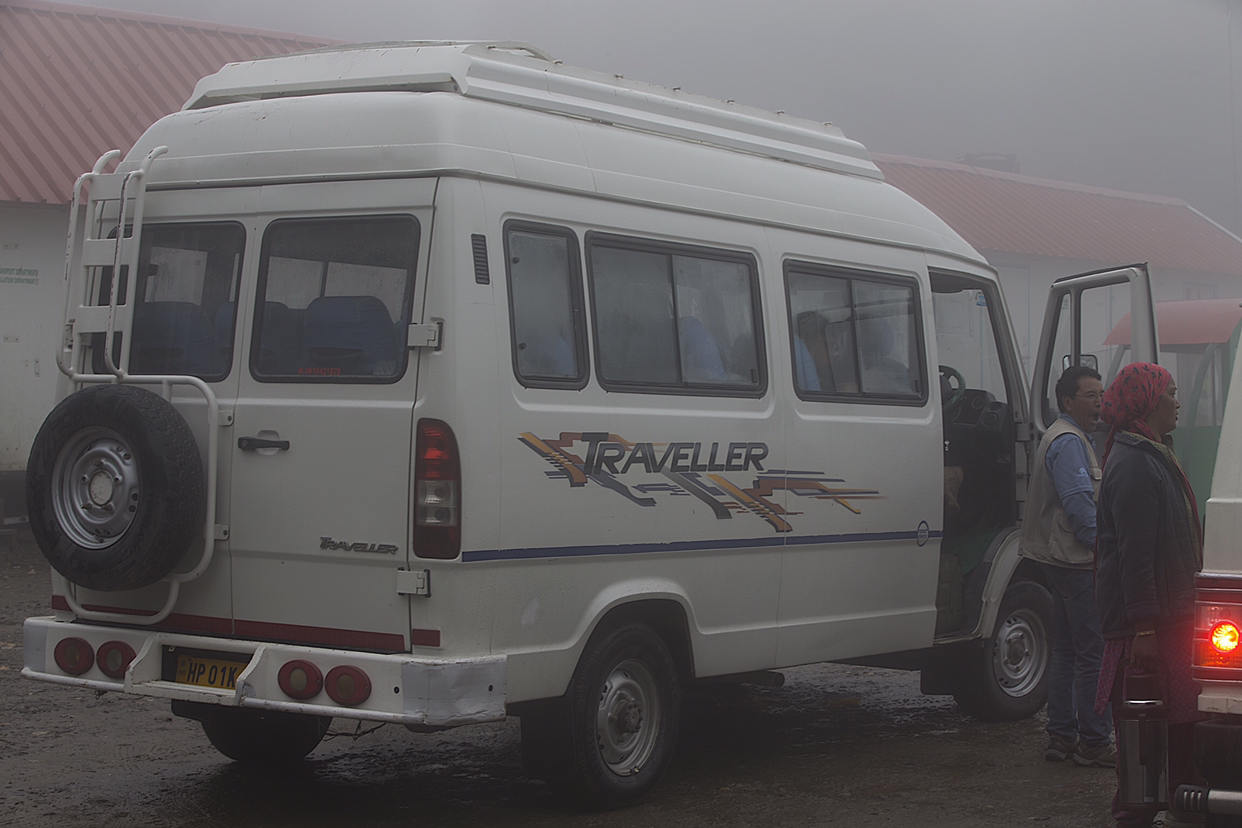 마날리 뒷산으로 산 길을 돌고 돌아 올라오는 아침시간에는 안개가 앞뒤로 길을 막고 있었다. 지명이 팔찬(Palchan)이라는 곳에서 길이 좌우로 갈라지는데 차들이 쉬었다 가는 모양인데 우리는 그대로 지나쳤다. 커다란 커피 포트를 들고 이 차 저 차로 차를 팔러다니는 현지인 행상들이 그들의 삶을 이어가고 있었다. 아마 이 구역이 안개로 뒤덮여 운전하기가 제일 힘들었던 곳으로 기억되었다.