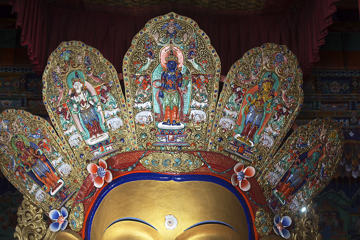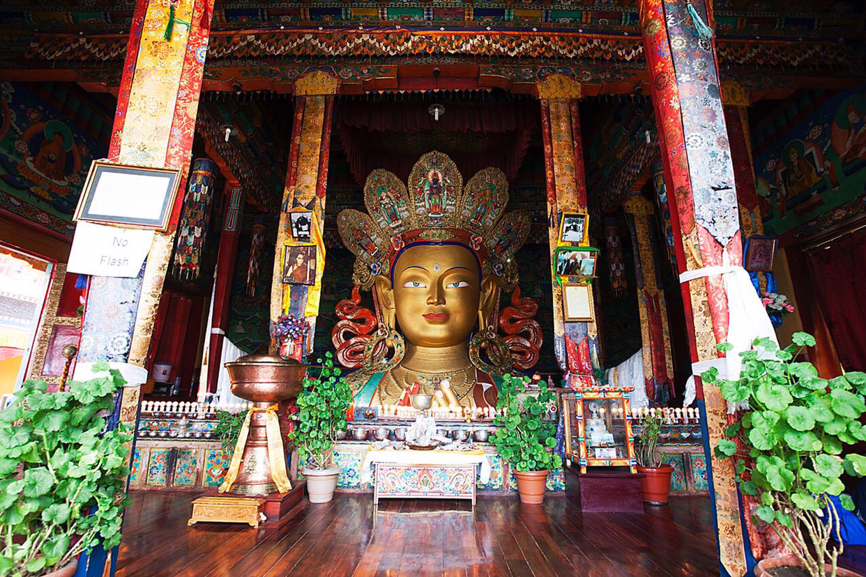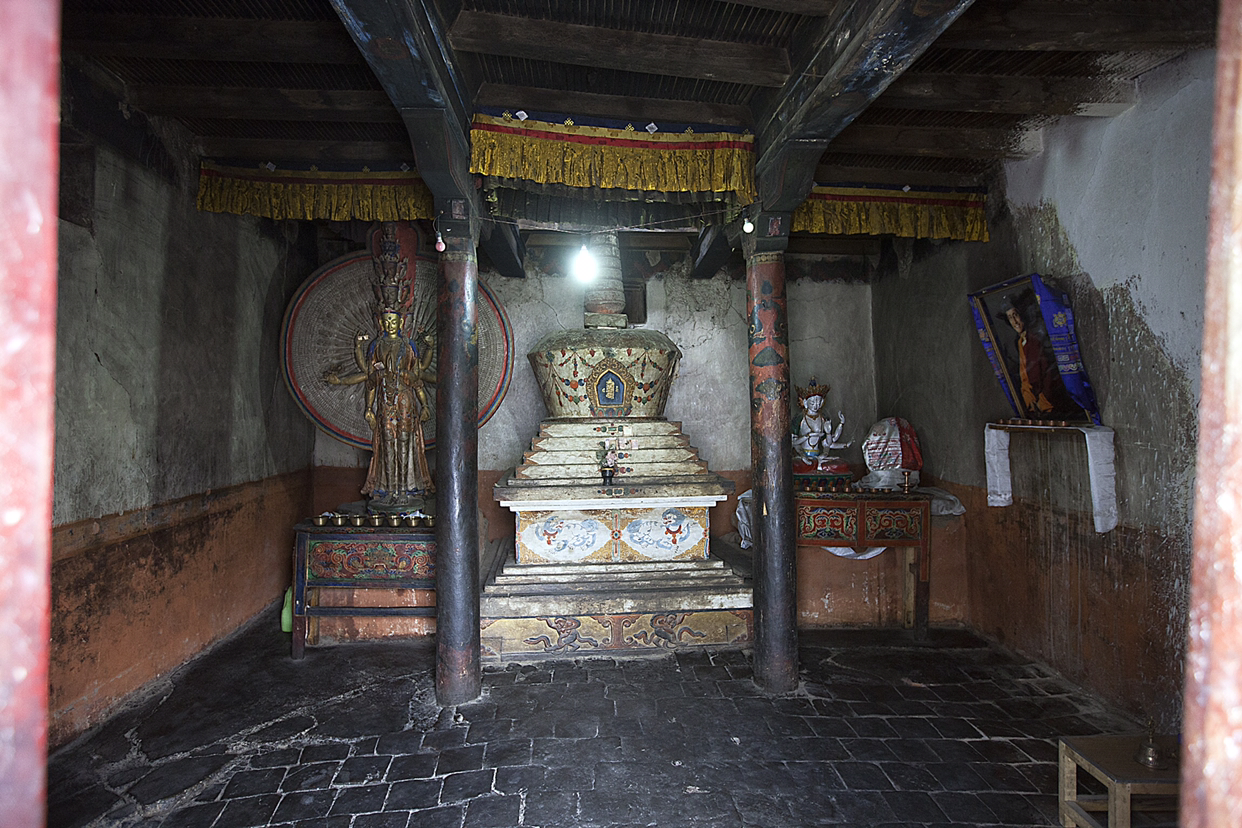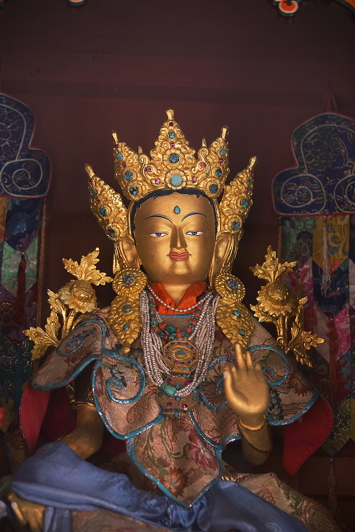 Shey 왕궁에서 10 킬로미터 더 남쪽으로 내려가면 왼쪽언덕위에 마치 티벳 라싸의 포탈라궁처럼 폼나게 서있다. 첫눈에 보아도 부흥하는 교회처럼 부티나는 절간이다. 일단 이 곰파를 찾는 외국인 관광객이 엄청 많다. 입장료 수입도 만만찮다. 다행히 여기서는 플래쉬만 사용하지 않으면 실내 촬영을 할 수 있어 실내에 모셔논 부다상을 비롯하여 실내 사진을 마음대로 찍었다.