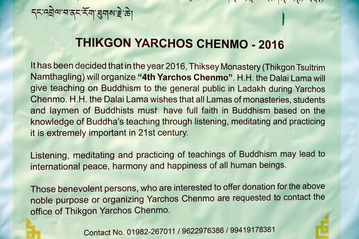 틱세사원은 15세기경 축조된 겔룩파 사원으로 아래 사진에서 보여주는 야외법회당에서 이번달 8/9일부터 3일간 달라이 라마가 법회를 주관한다고 공고하여 벌써부터 여기 Leh 주민들과 관광객들도 그 날에 맞추어 법회에 참석하려고 안달들이다.