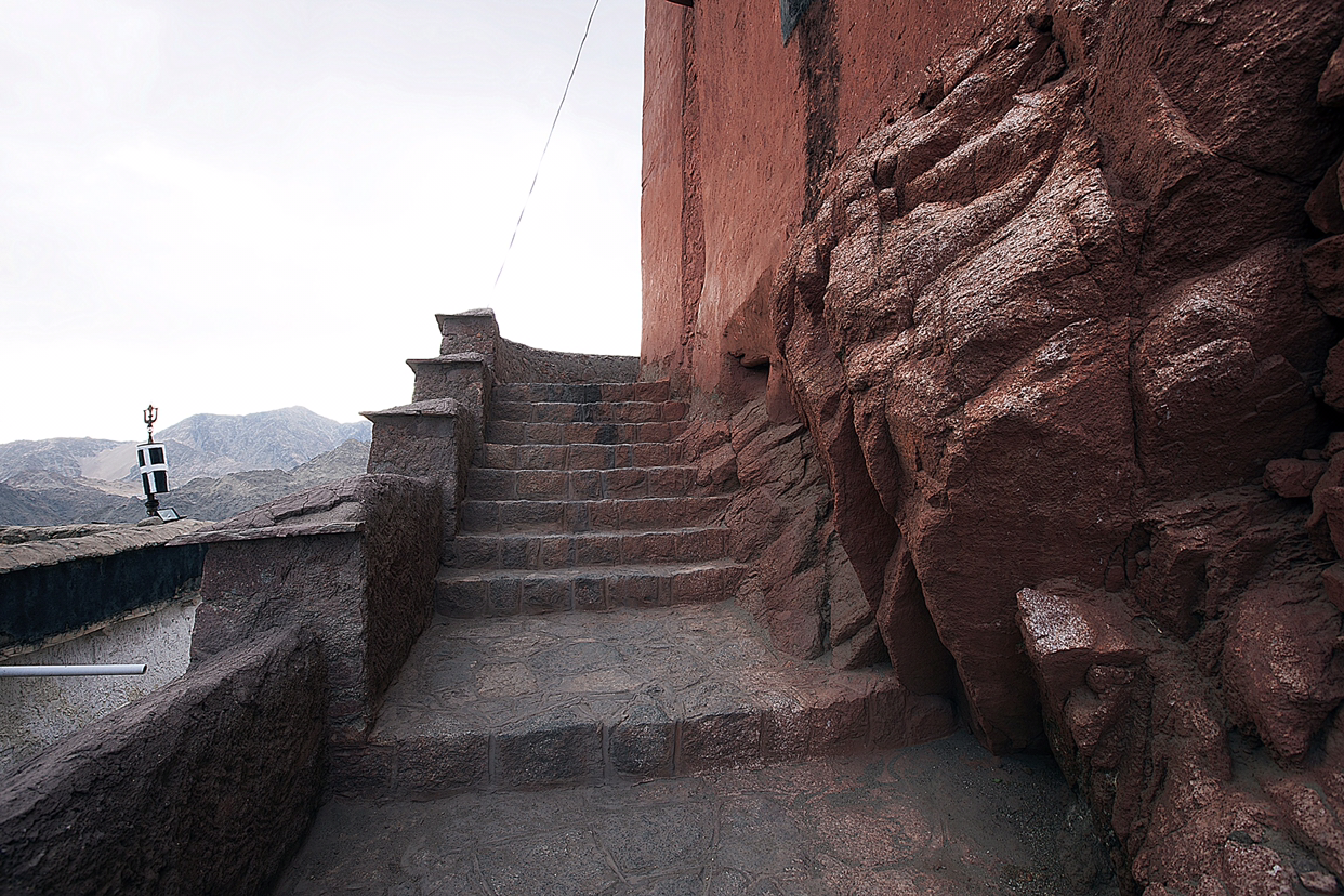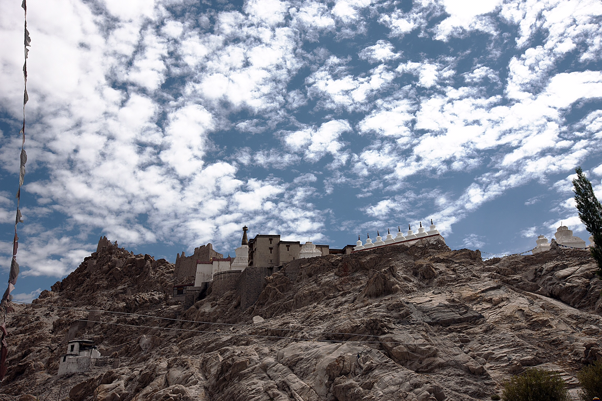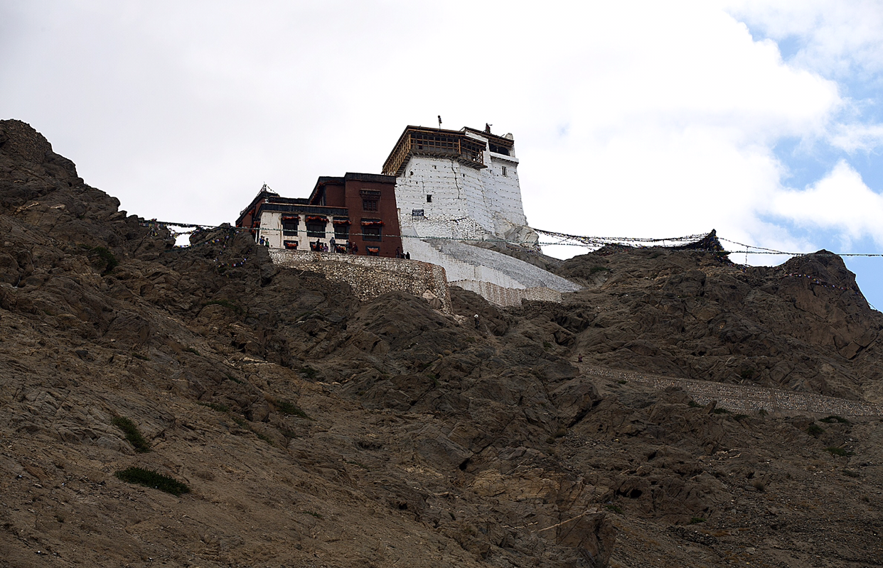 Shey 왕궁을 뒷쪽에서 올려다 본 모습으로 돌산 위에다 왕궁을 세운 것으로 외부로부터 적이 침입하였을 경우 좀처럼 점령할 수 없는 난공불락의 요새와 다름이 없다. 왕궁이라기보다 돌산위에 세워진 성채이다.