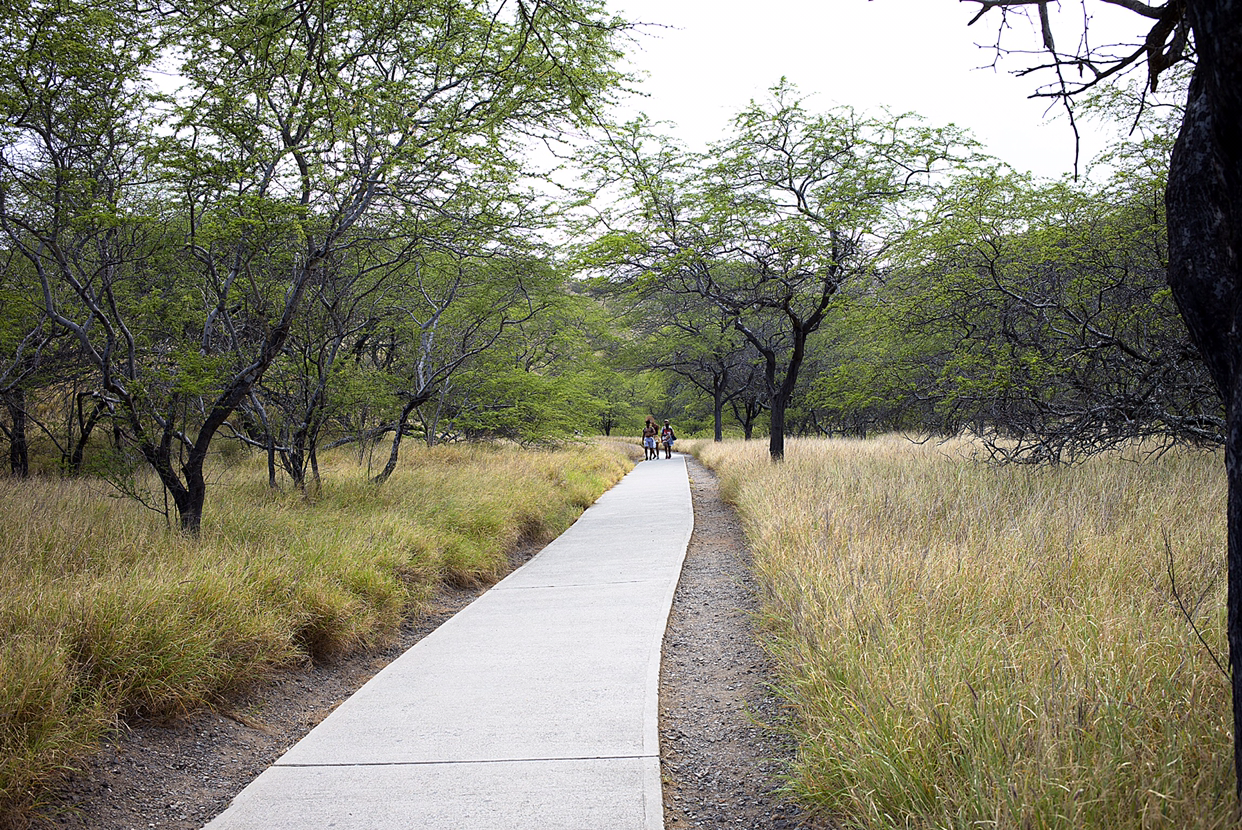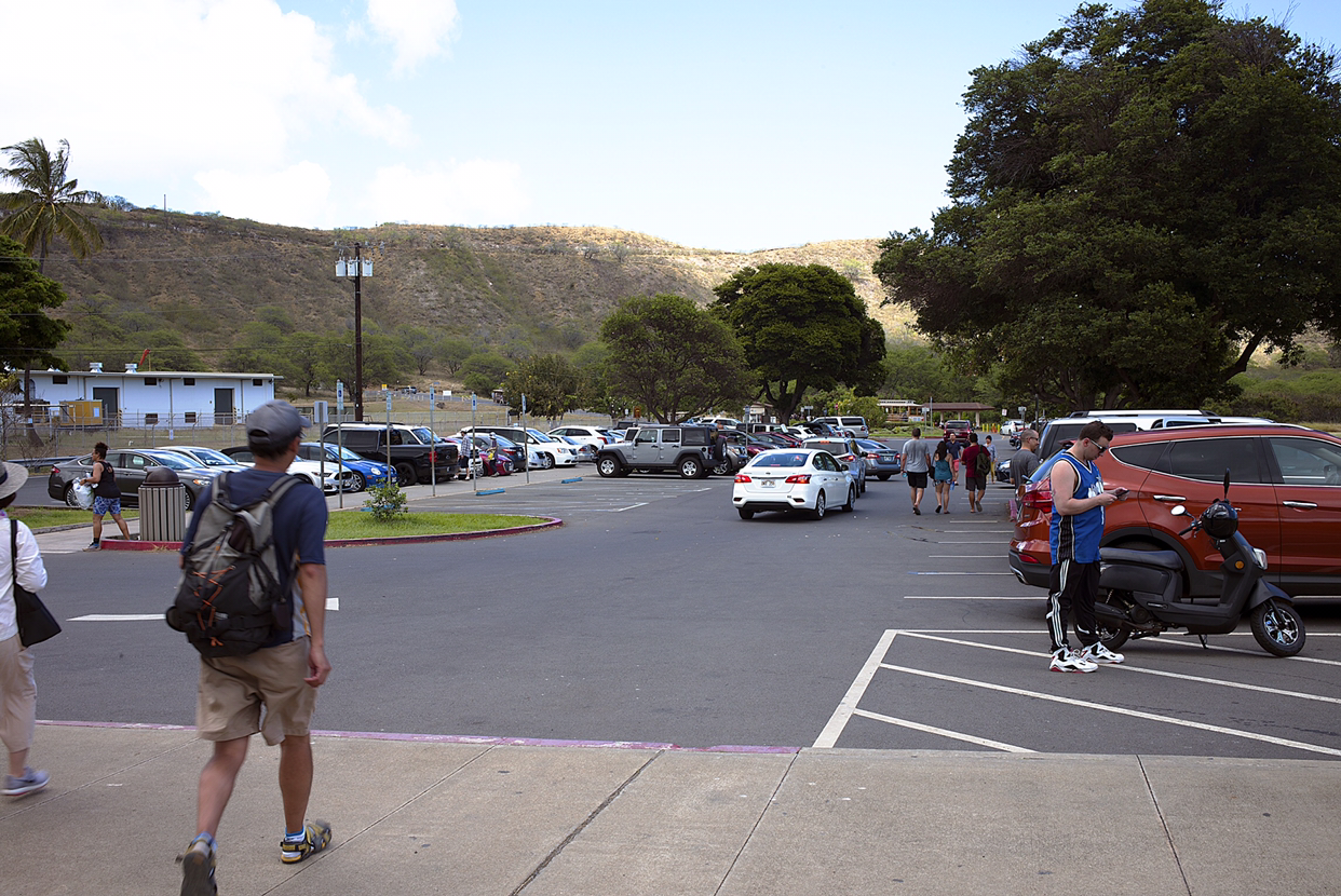 올라갈까 말까 망설이다 편도 45분 걸린다는 관리인 말에 혹하여 입장료 5불(차 없이 들어가면 인당 1불) 내고 들어섰다. 쨍쨍 내리쬐는 불볕더위는 아니지만 5월의 하와이 태양도 따끈한 정열의 불꽃을 조금씩 뿜어내고 있었다.