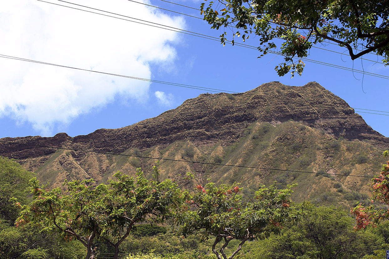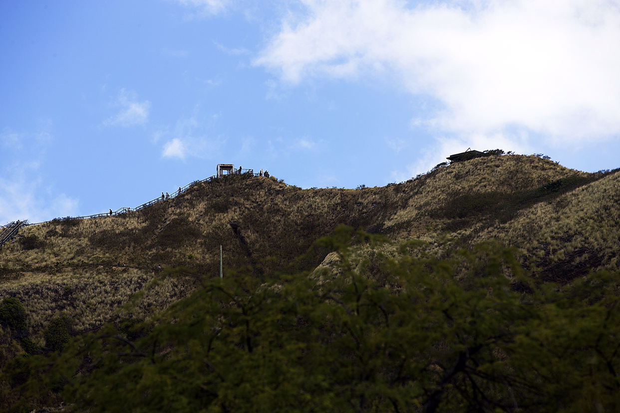 다야몬드 헤드 정상에서 동서남북으로 내려다보는 경치는 일품이다. 그러고 보니 여기가 마치 높은 전망대같이 느껴졌다. 그러나, 다른 도시의 전망대처럼 돈 내고 고속 엘리베이터 타고 올라가는 것이 아니고 발품을 팔아야 정상에 설 수 있다는 것이 다르다. 그래서 땀 흘린 만큼 제대로 보상을 받을 수 있는 착하고 정직한 곳이 다야몬드 헤드에 오르는 것이다. 바람이 거센 정상에서 눈으로 실컷 바다 구경을 하고 나서 천천히 산 비탈길을 내려왔다.-JH-