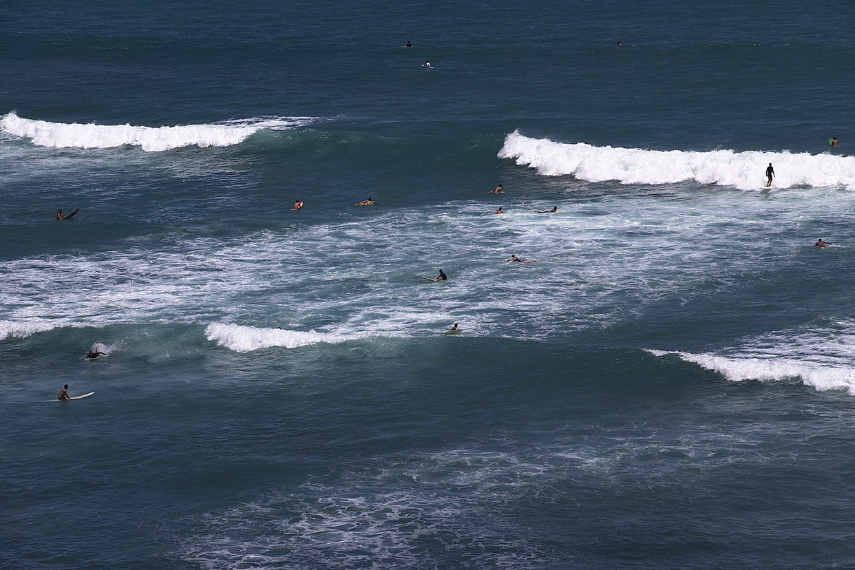 전 세계적으로 Surfing으로 유명한 해변이 많은데 하와이 해안도 그중의 하나이다. 와이키키보다 오아후섬 북서쪽에 자리하고 있는 North Shore와 Waimea Bay가 유명하여 세계대회가 열리는 곳이다. 와이키키 해변도 서핑으로 많은 사람이 찾은 곳으로 해변가에 나가보면 서핑보드를 옆에 끼고 걸어 다니는 남녀를 볼 수 있다. 와이키키 해변을 따라 내려가는 칼라쿠아(Kalakaua Ave) 대로는 일방통행으로 되어 있어 매우 번잡스러워 차 파킹 할 자리를 찾는 게 하늘의 별따기다. 그래서 많은 서퍼들이 차를 여기에 파킹 하지 않고 와이키키 해변에서 좀 떨어진 곳에 차를 대고 해안에서 서핑을 즐기고 있었다.