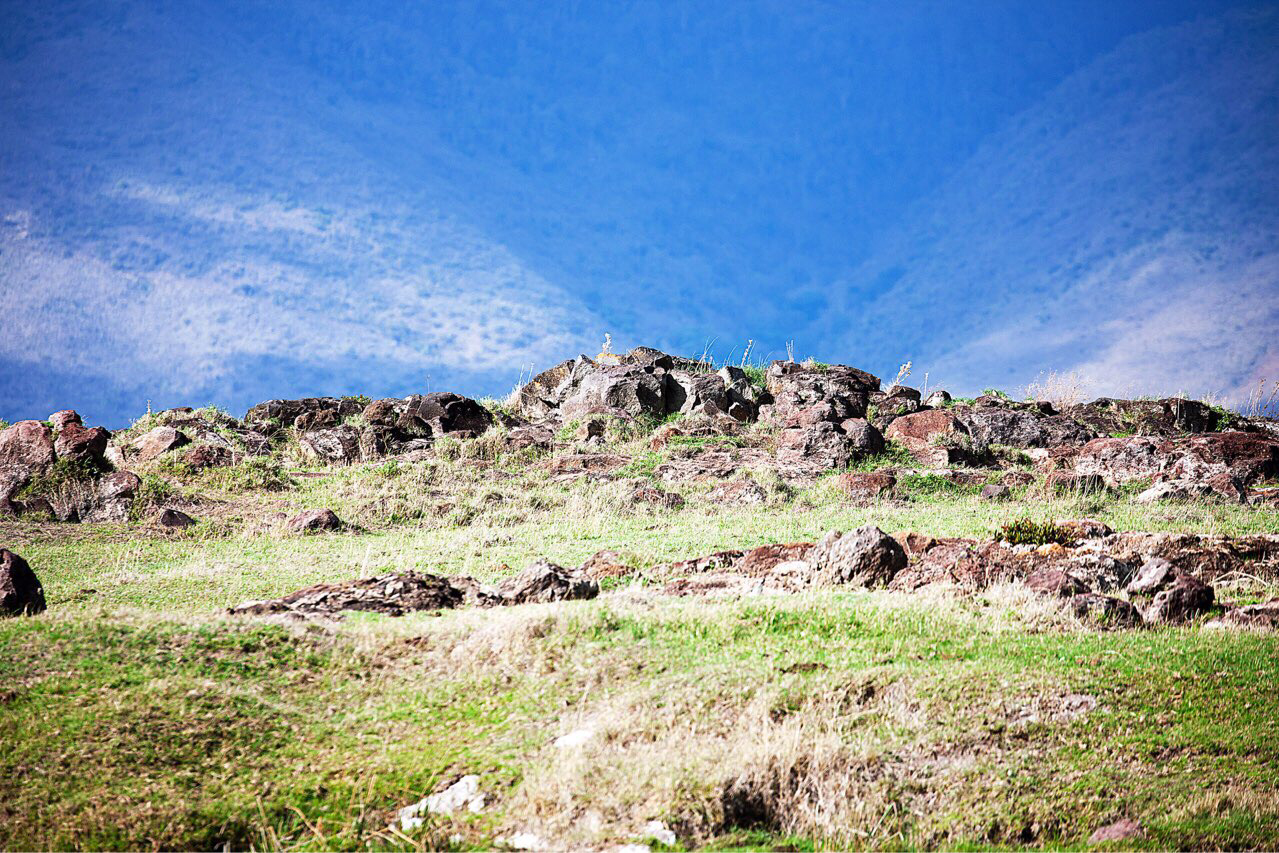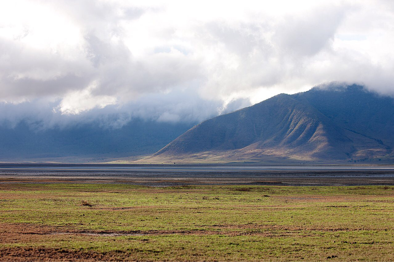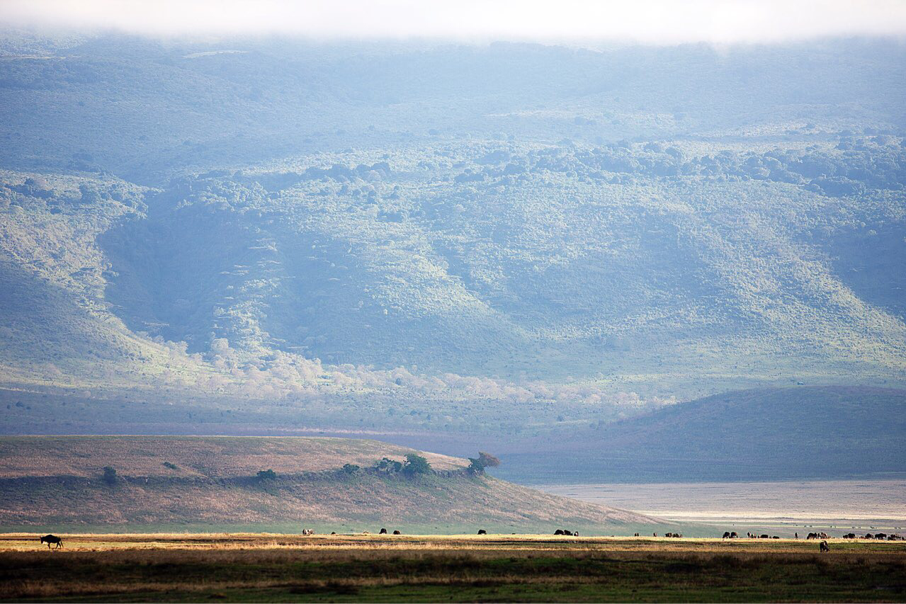 한참을 유난히 붉은 모래색이 나는 산길을 따라 분화구로 들어가는 입구에 다다렀다. 주마가 출입 서류 절차를 밟는 동안 차에서 내려 분화구 일부를 카메라에 담았다. 600미터나 아래로 내려 앉은 분화구는 이른 아침의 화사한 햇볕으로 초원은 약간 황금빛으로 빛나고 구름의 그림자로 덮힌 저 끝 쪽에는 짙은 남색으로 좀 더 어두운 물감을 칠한 듯 하다. 수직 높이가 600미터나 되는 분화구로 내려가는 길은 나사 홈처럼 이리 저리 완급을 조절하며 길이 나 있어 속력을 낼 수 없다. 찻길 왼쪽 아래로 내려다보니 그냥 절벽 낭떠러지이다. 난 처음에 여기가 사파리 투어에 포함되어 있길래 그냥 분화구 경치 구경하러 가는줄 알았는데 가보니까 여기에도 동물들이 세렝게티처럼 노닐고 있어 Game Drive의 한 장소임을 알게 되었다.