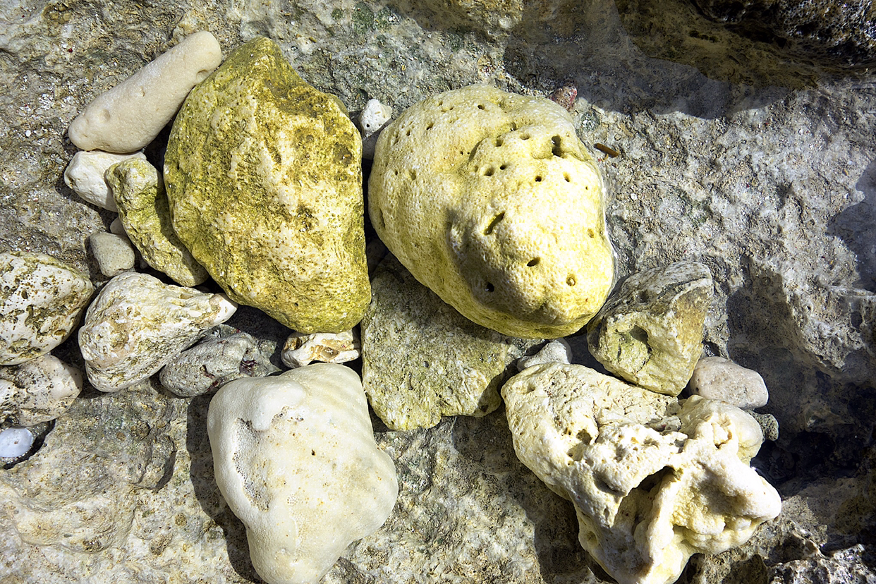 해변으로 내려가는 길은 돌맹이 투성이의 너덜길이었고, 작은 배를 띄울 수 있도록 트럭이 견인할 수 있는 차길도 나 있었다. 최남단 그곳에는 모래사장은 없었고 해안의 바위들이 파도의 침식 작용으로 여러 모양으로 변해 가고 있었다. 그래도 청정한 바다는 여전했다.