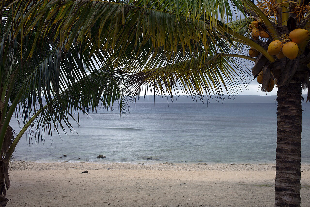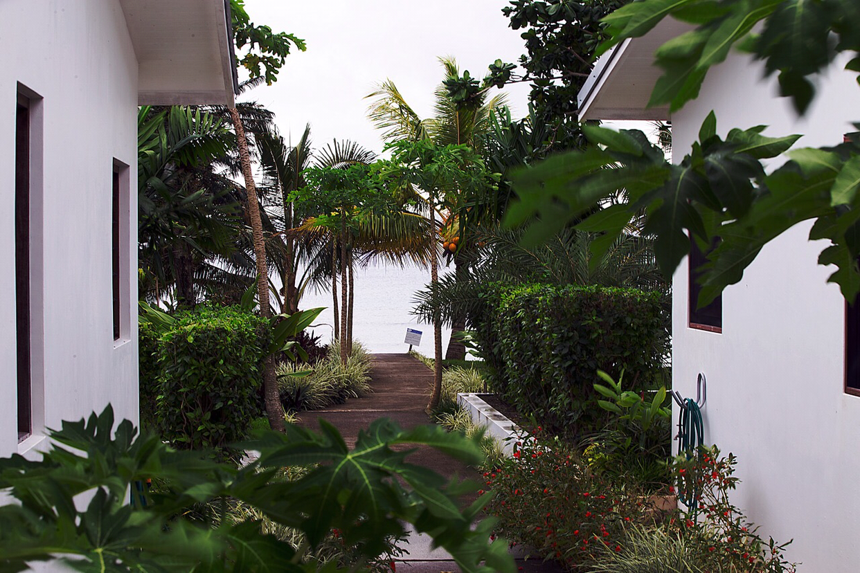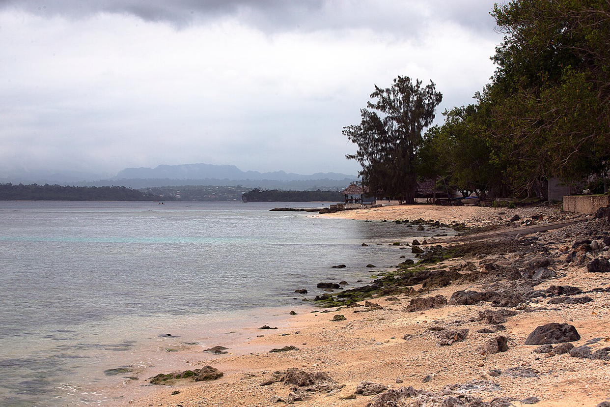 빌라 사이로 난 길을 걸어 나가니 누런 열매가 주렁주렁 달린 야자수 사이로 바다가 반겨 주었다. 해가 구름에 가려 비록 바다물색은 화려하지는 않았지만 탁 트인 바다를 바라보는 것 만으로도 마음은 이내 즐거워졌다. 모래사장은 기대할만한 수준은 아니었지만 해변을 느끼기에 그리 부족한 것도 아니었다. 모래보다 바위가 더 많았다.