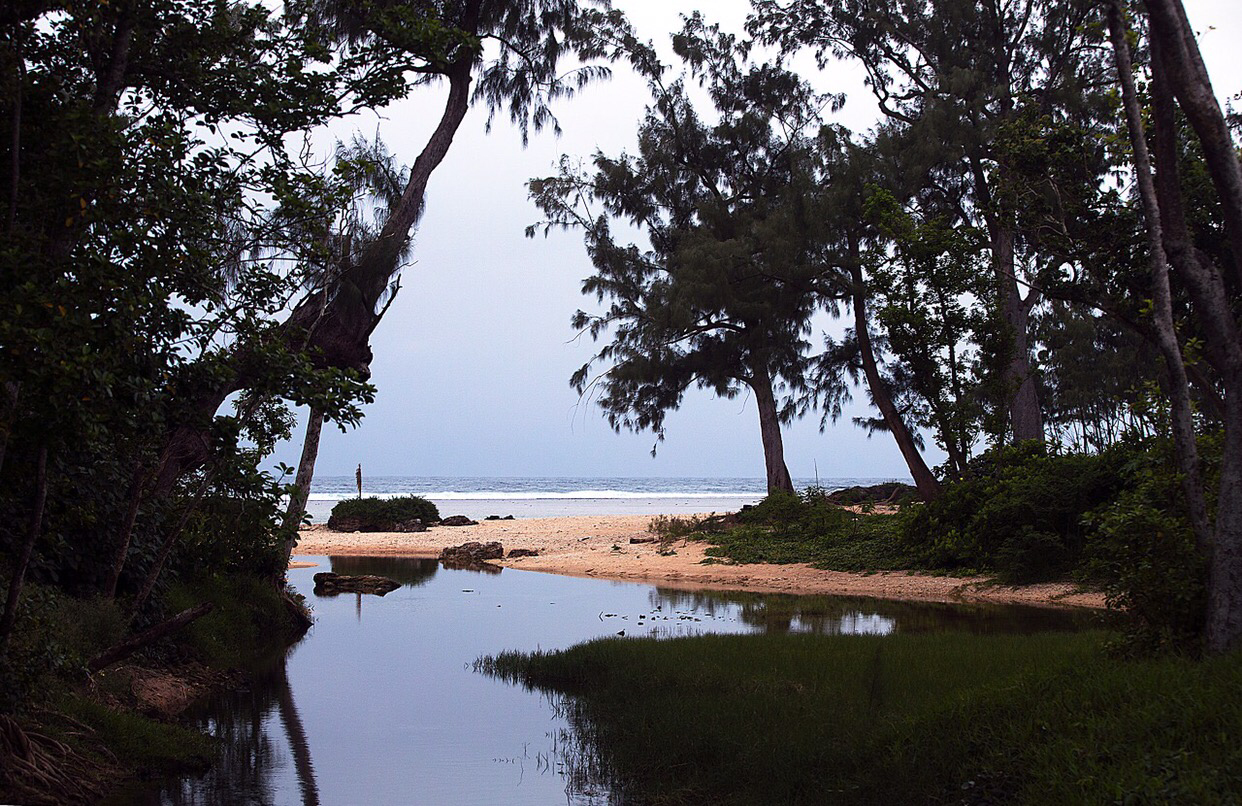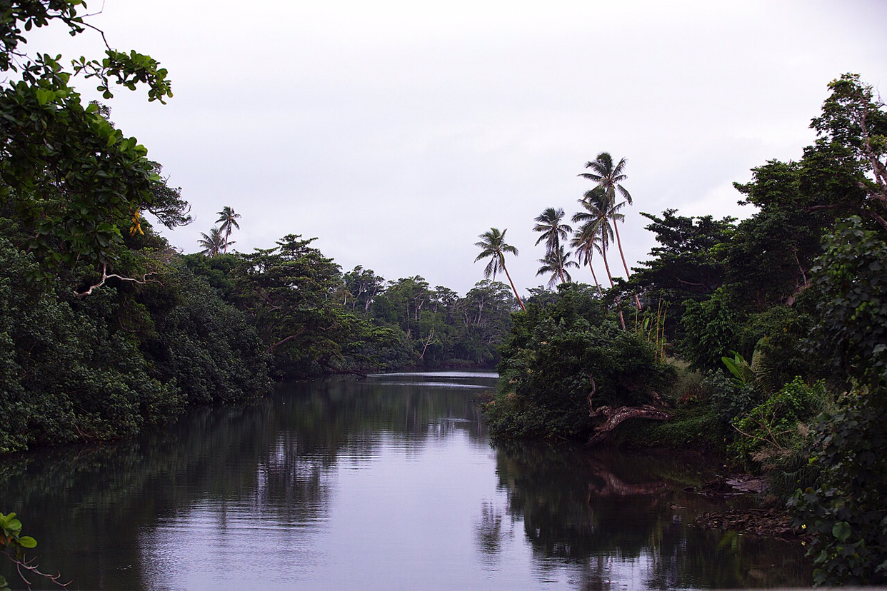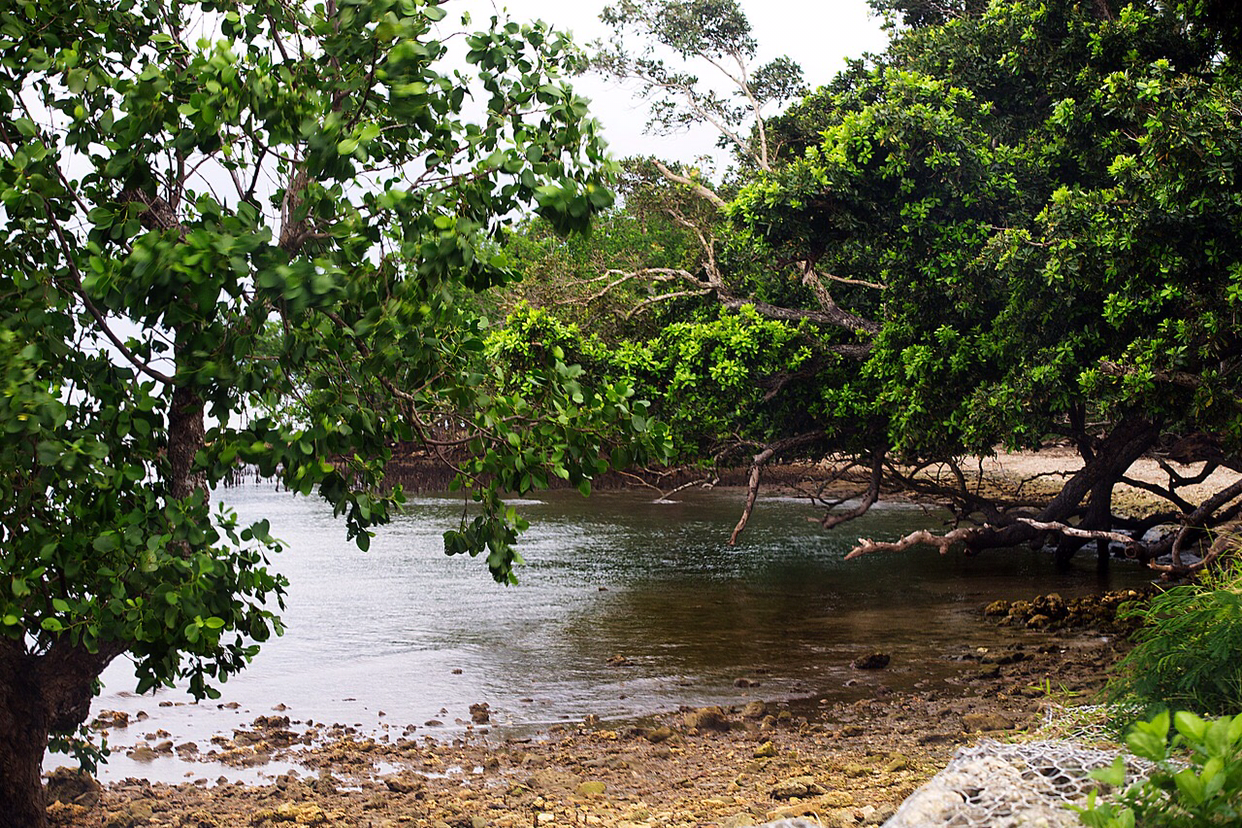 다리가 있어 다리위에서 내륙쪽으로 눈을 돌려 보니 청정한 강물이 흘러 내려와 바다로 흘러 들어가고 있었다. 강 양쪽으로 울창한 수풀이 강을 따라 빼곡하게 들어 차있어 열대 우림지역같았다.