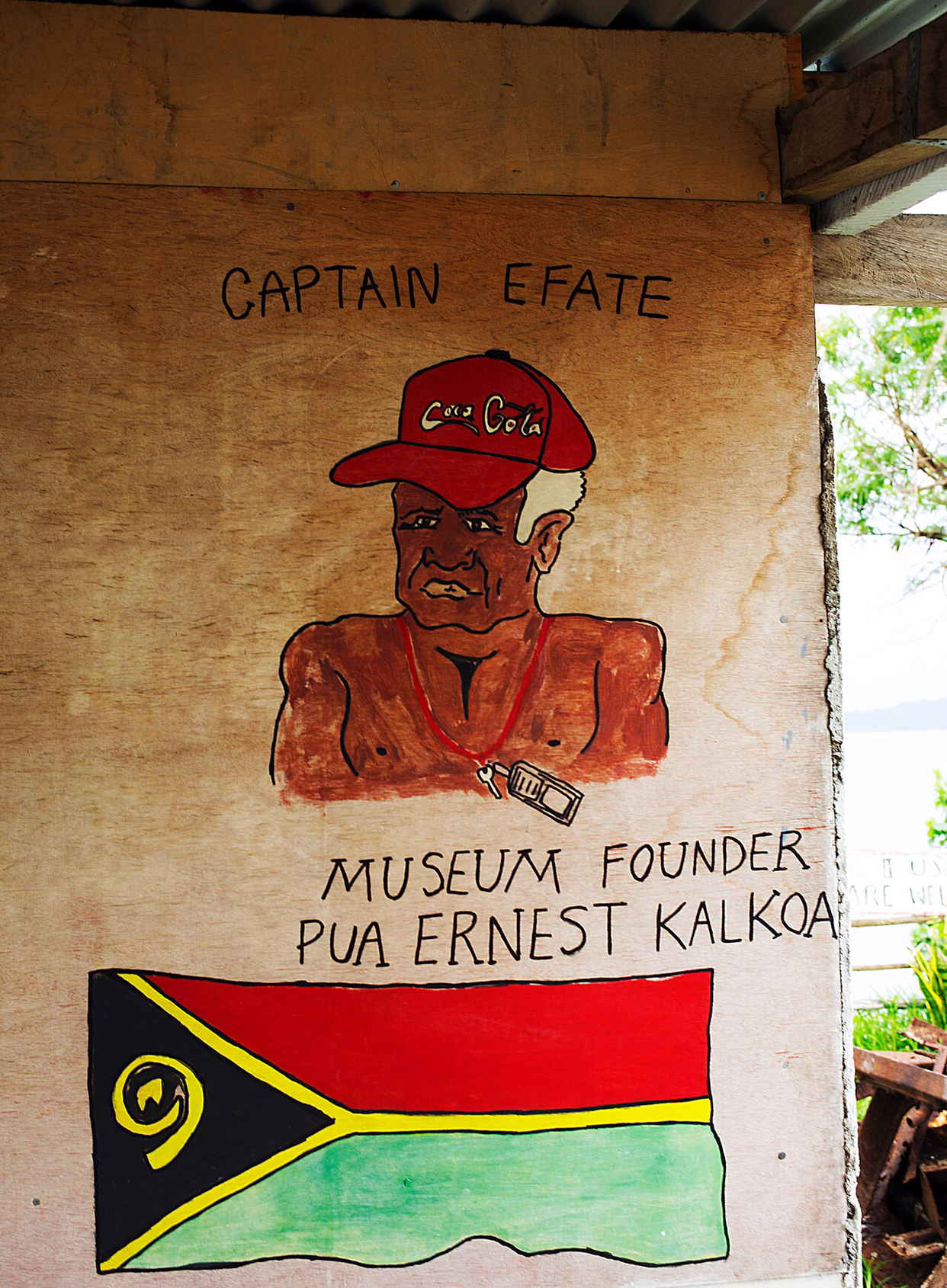 박물관 창시자로 Pua Ernest Kalkoa로 소개하고 있다. 마을 주민인 모양이다. 코카콜라 모자를 쓰고 있는 창시자를 Captain Efate로 부르는 것도 유머스럽다.