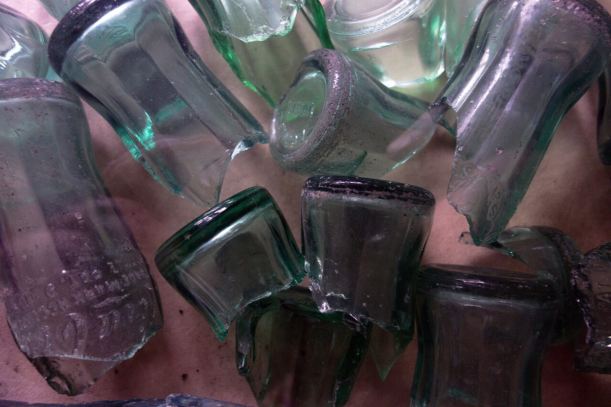 진열실에 들어 서니 선반위에 진열된 물건들이 대부분 깨어진 코카콜라 병 조각들이었다.