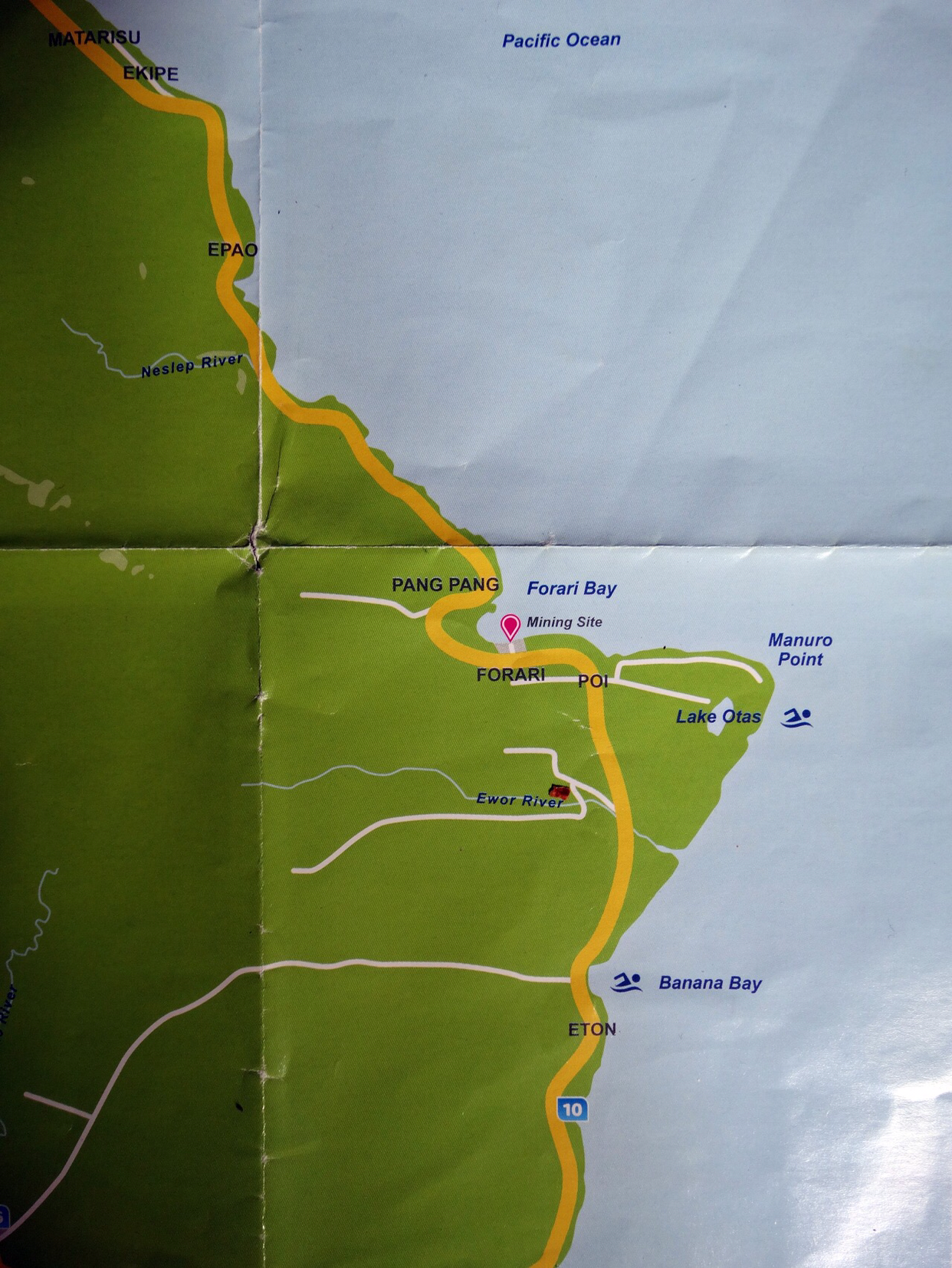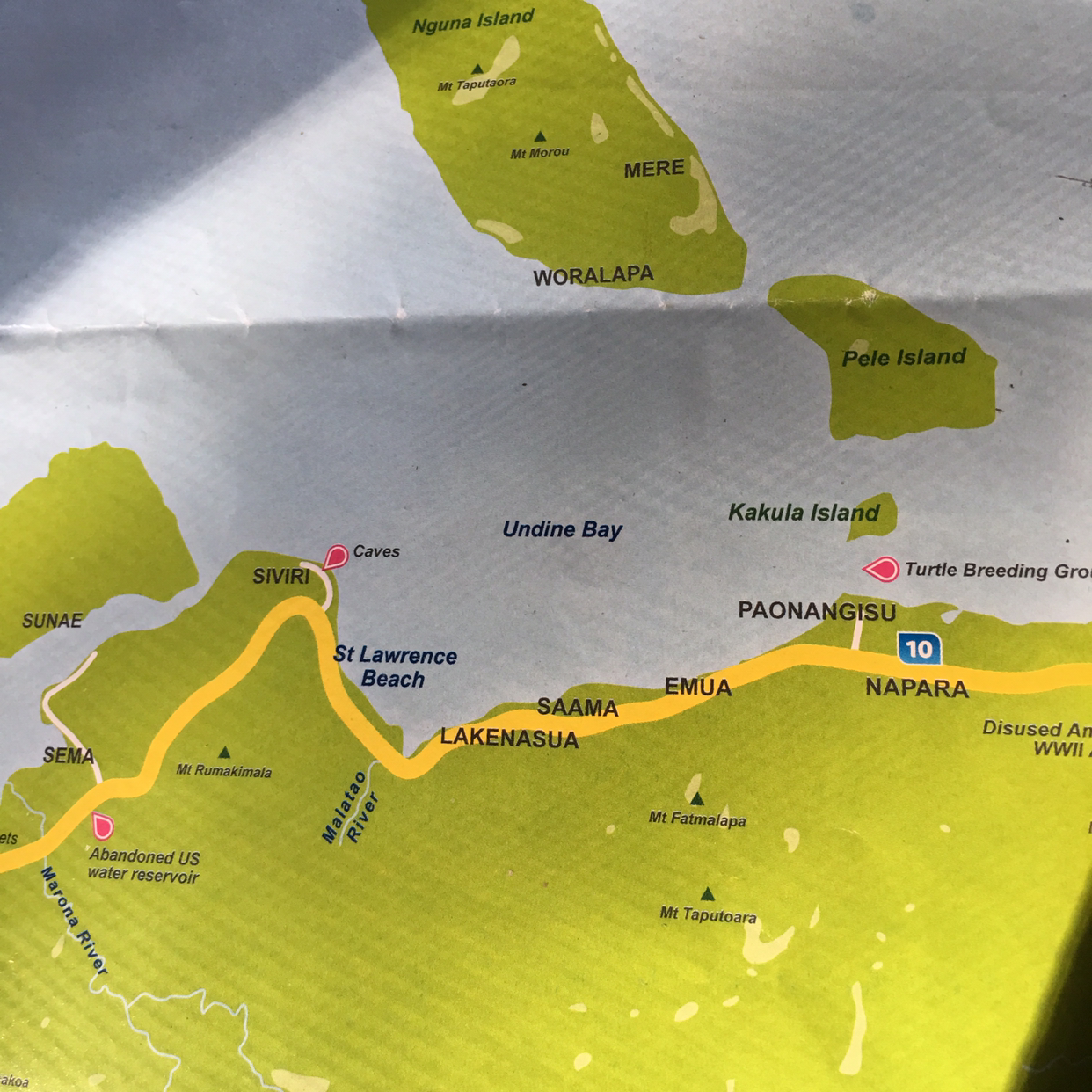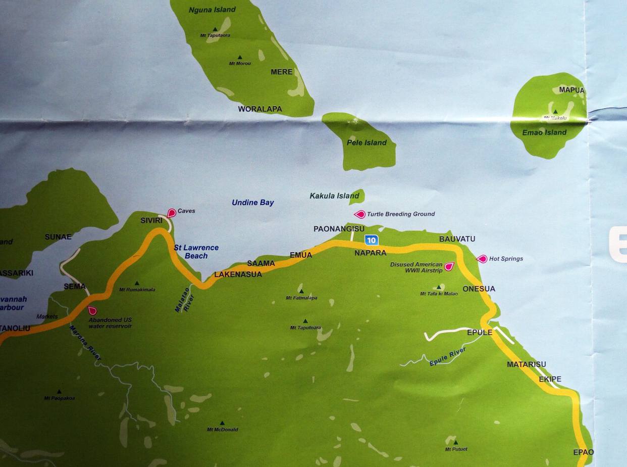 북부 해안도로를 버리고 동부 해안도로로 내려가는 길에 마을 Epau가 있었다. 마을을 지날 때 부터 땅거미가 내리기 시작하였다. 도로는 해안으로 이어지지 않고 내륙으로 들락날락하며 Port-Vila로 향하고 있었다. 곧 어둠이 사방을 덮어 버리자 자동차 헤드라이트가 비쳐주는 도로의 앞쪽 부분만 식별할 수 있고 나머지 부분은 어디가 무엇인지 알아 볼 수도 없었다. 어둠이 내려 앉은 Efate 순환도로를 때때로 마을 주민들이 길 양쪽으로 걸어 가고 있었다.