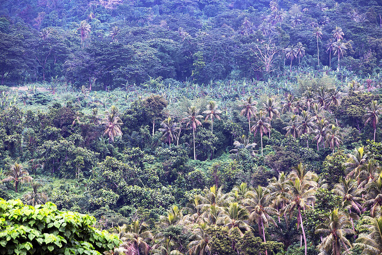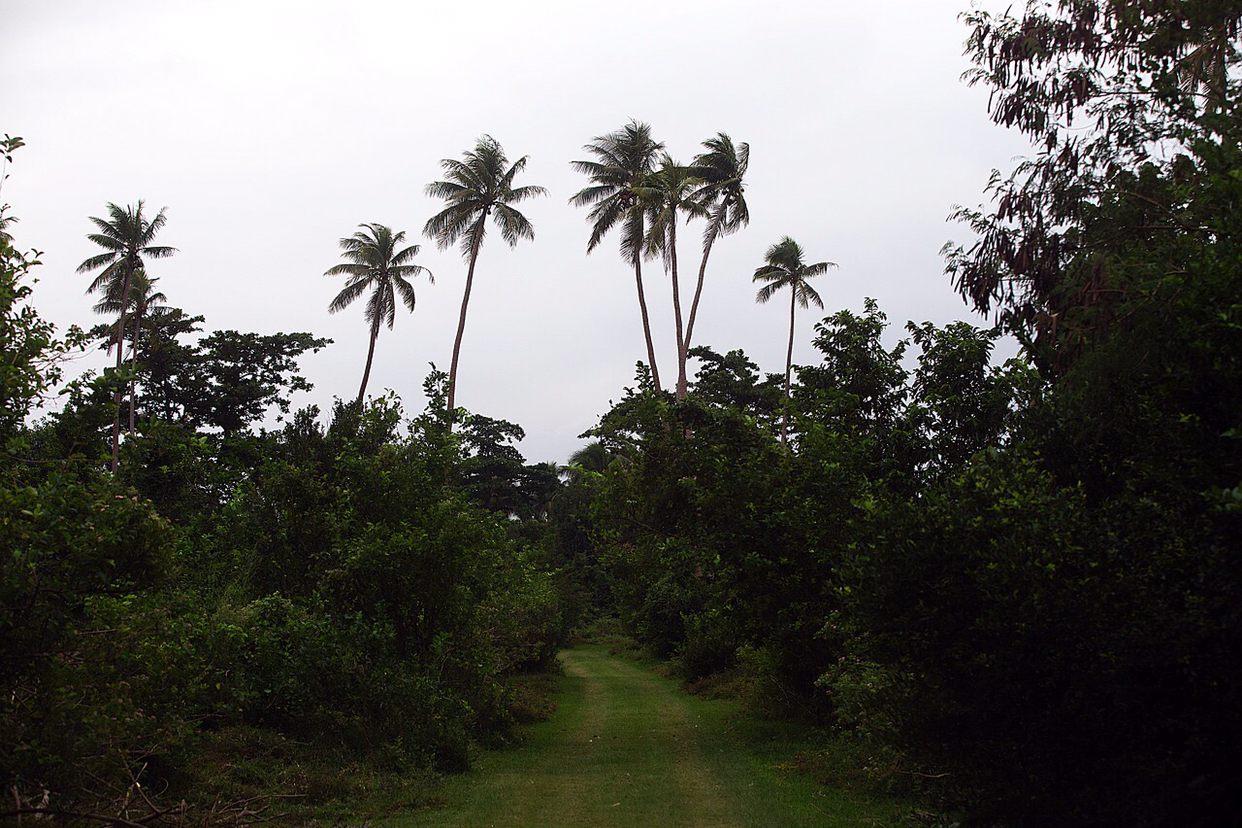 유난히도 키가 크고 쭉쭉 뻗은 야자수가 마을 앞뒤로 서있었다. 남태평양 어느 작은 섬에서 이런 야자수를 바라보니 내가 일상적으로 지내던 곳으로부터 아주 멀리도 떠나와 있다는 것을 비로소 실감하면서 이국적인 정취가 물씬 풍겨나는 주변 경치에 흠뻑 젖었다. 마을을 지나는 동안 키 큰 야자수 숲은 계속 되었다.