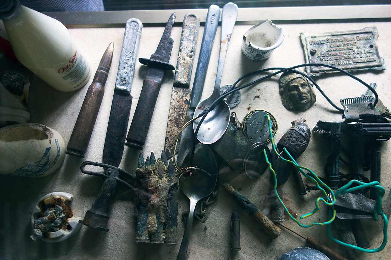 엉성하게 나무로 짜놓은 진열대에는 근처에서 수집해놓은 각종 군용 장비들이 놓여 있었다. 군용 나이프, 총탄, 숟가락, 일회용 면도기, Old Spice라는 남성 향수병(현재도 판매되는 유명 브랜드)등을 볼 수 있었다.