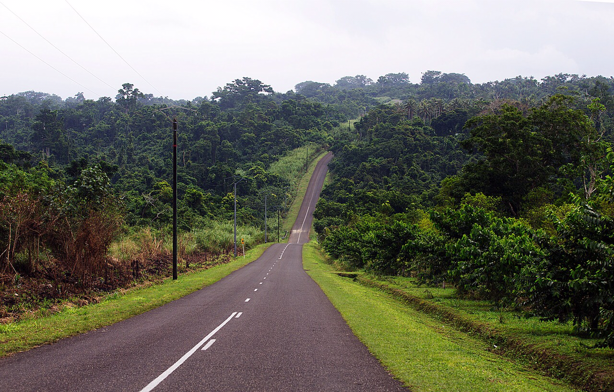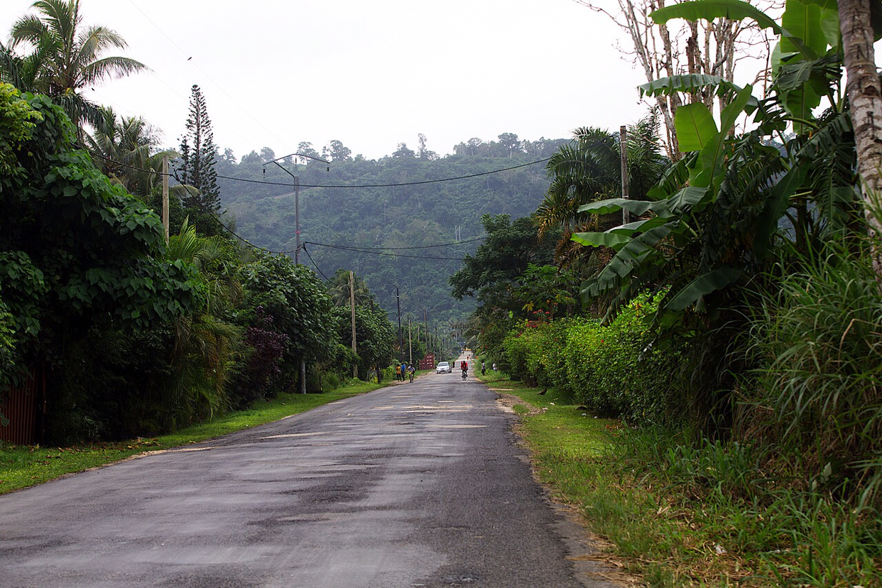 대부분의 도로는 해안으로 나있지 않았고 해안과 좀 떨어진 후미진 뒷쪽으로 연결되었다. 순환도로는 왕복 일차선 으로 잘 포장된 pavement 도로였다. 본섬의 한가지 특징이 대부분 울창한 열대 우림지역에서 보이는 숲으로 둘러 싸여 있어 짙은 녹색의 넓은 잎을 가진 식물들로 이루어져 있다. 도로를 달리는 버스나 승용차도 그리 빈번하게 마주치지도 않았다. 매우 조용하고 하품이 날 정도의 한적한 해안도로를 달렸다. 갈림길에서 북쪽으로 방향을 틀어 한참 달려가면 약 50도 정도의 매우 가파른 경사길을 올라 가야 했다. 그 경사길 정상에 올라가면 멀리서 바다 풍경이 한가득 눈에 들어왔다.