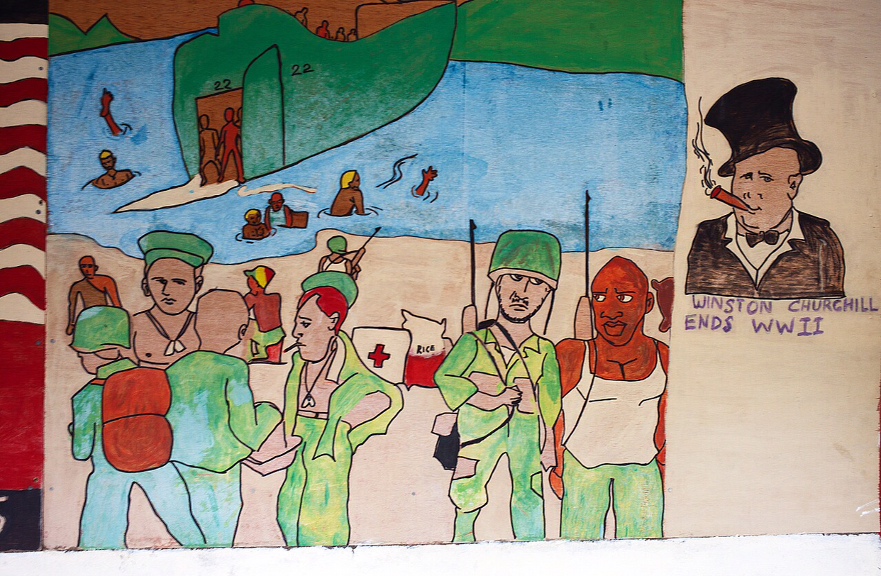 당시 영국의 수상인 Winston Churchill이 이차 세계 대전을 종식시켰다고 적혀있다. 바누아투가 영국과 프랑스의 오랜 지배를 받아 왔는데 이런 그림을 보니 프랑스보다는 영국의 영향력이 더 큰 것이 아니었을까 하고 추정해본다.