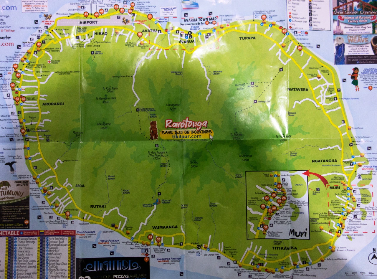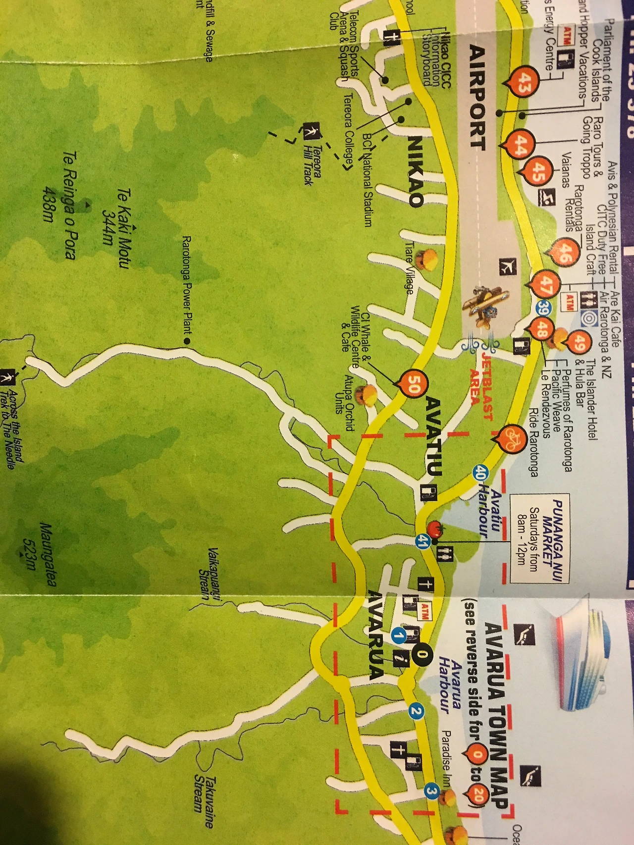 위 지도에서 보듯이 수도 Avarua는 섬 북부해변 중간쯤에 위치하고 있다. 수도라고 해서 폼나는 삐까한 건물이 있는 것도 아니고, 단지 다른 지역보다 관광객을 위한 식당이나 숙박업소, 차 렌트회사, 식료품 가게등 편의 시설이 늘어져 있다. 국제공항(섬에 있는 유일무일한 공항)은 Avarua town의 서쪽에 위치하고 있는데 별로 멀지도 않다.