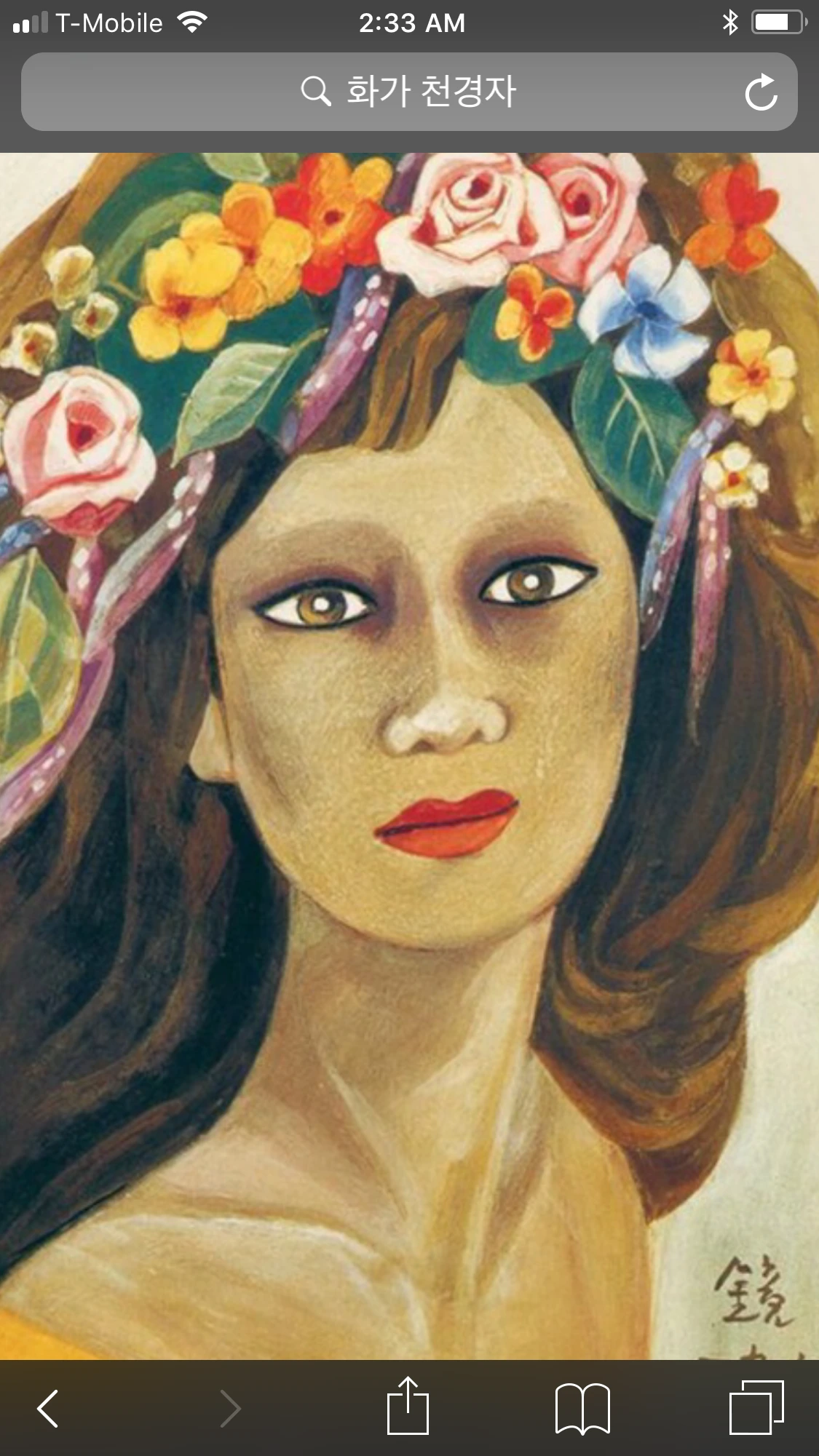 박물관 입구에서 이 그림을 보는 순간 <꽃과 여인의 화가>라고 불리우는 천경자(1924-2015)화백의 그림이 번개같이 머리속에 떠올랐다. 전남 고흥태생으로 유복한 어린 시절을 보낸 화가는 고등학교를 마치고 1940년 17세에 일본으로 유학을 떠나 <일본여자미술대학>에 입학하여 당시 대세였던 서양미술보다 섬세한 일본화를 선택하여 그녀만의 독특한 화풍을 구축하였다.