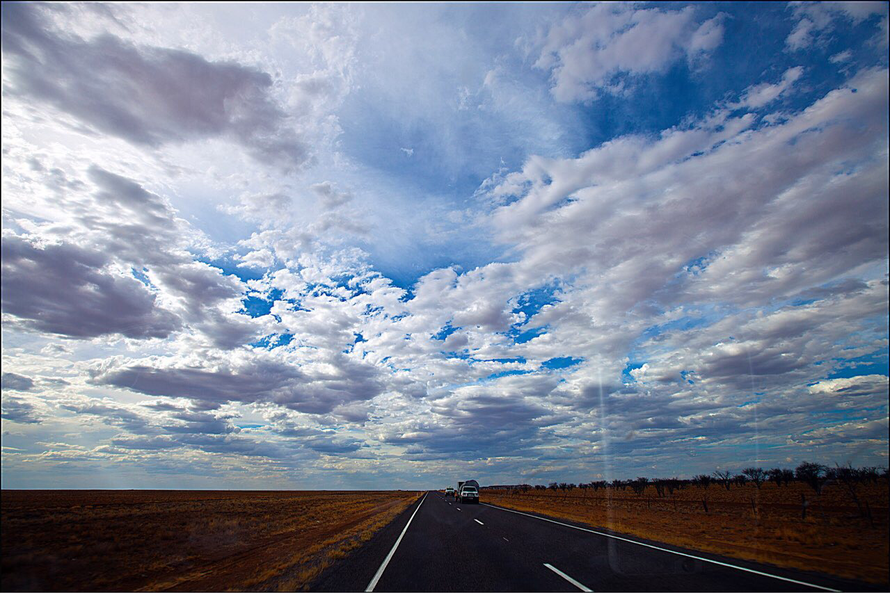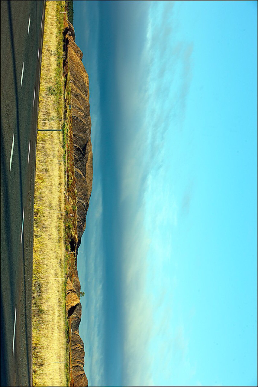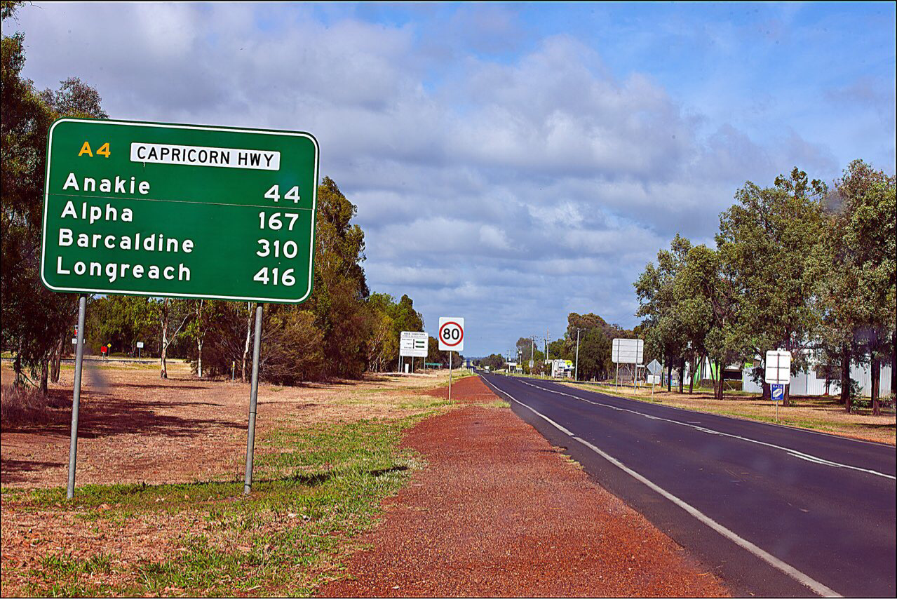 도로명이 Capricorn Way라 한다. 지도를 보니 남위 23.5를 따라 달린다. 그래서 남회귀선 도로라 하는 모양이다. 그저께 지나온 Rockhampton과 일직선상에 있는 도로다. Emerald라는 곳으로부터 Longreach까지 416km 남아있다고 알려준다. 서울 부산을 한번 달려야 할 거리이다. 사람들이 거주하는 작은마을을 지나면 금방 누런 허허벌판이 펼쳐진다. "높고 텅 빈 하늘만 눈에 보이네”라는 보리밭 노랫말과 거의 일치하는 장면들이다. 끝없이 이어지고 이어지는 Outback의 풍경들이다. Outback으로 이어지는 찻길은 아래 사진처럼 일직선으로 뻗어있어 잠깐 졸음 운전한다해도 스쳐지나가는 차만 없다면 크게 도로에서 벗어나지는 않는다. 그만큼 스쳐지나가는 차 보기도 힘들다는 소리다. 끝이 보이지 않은 고속도로를 열심히 달려 가고 있을 뿐이다. 호주 아웃백의 광활함을 몸으로 그리고 눈으로 확실하게 체험하고 있다. 이렇게 단조로운 길을 따라가는 이유는 다른게 아니고 아웃백을 거쳐가야 호주의 명물 울루루 바위를 볼 수 있기 때문이다.