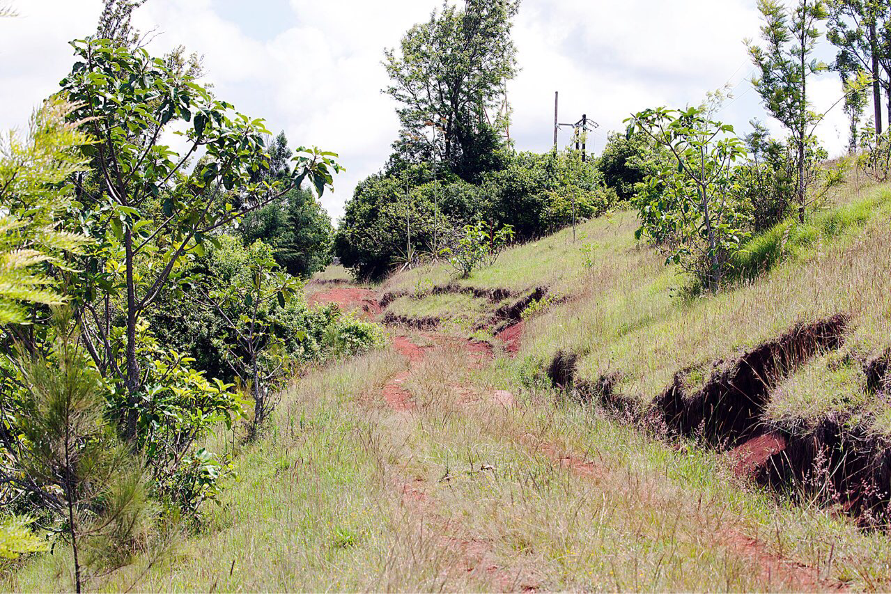 바나나 트리와 커피나무와 아보가도 나무로 눈이 시릴 정도로 녹음이 짙은 숲이 우거진 시골길을 따라 한참을 가니 응강구라고 부르는 산으로 올라갔다. 미니버스로 산속으로 한참 올라 왔기 때문에 벌써 어느 정도 킬리산속으로 들어 온 셈이다. 커다란 잎사귀가 파초 잎처럼 바람에 출렁거리는 시골길을 요리 조리 돌아서 조그마한 산으로 올라갔다. 조금 가파른 길로 거친 숨을 몰아치면서도 킬리산을 멋지게 찍어보겠다는 직업 정신에 충실한 지노는 흐르는 땀을 참으면서 응강구라는 산을 올랐다