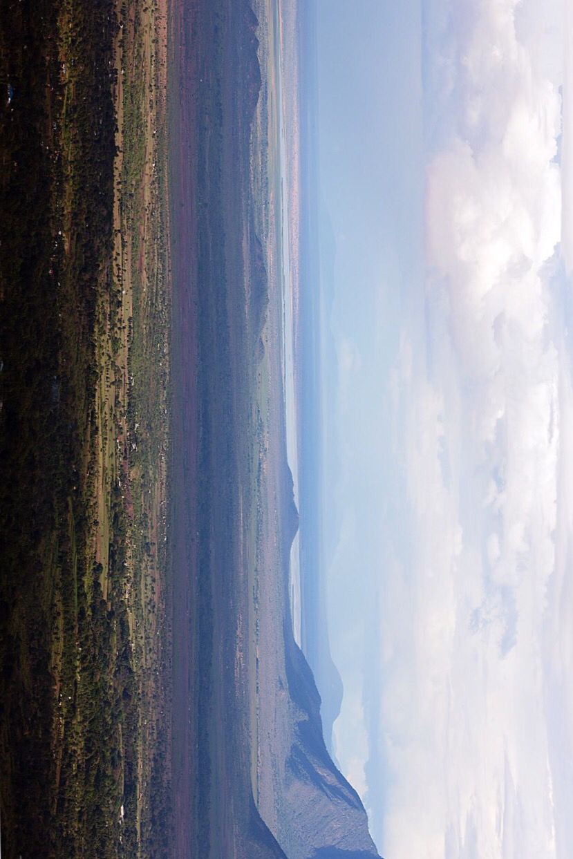 북쪽으로 바라보니 저 멀리 지평선이 아른하게 보이는데 가이드가 케냐 땅이라고 한다. 킬리산이 지도를 보면 케냐와 국경에 있는데 걸쳐있는 것이 아니고 조금 탄자니아쪽으로 들어와 있다. 저 멀리 집들이 따닥따닥 붙어있는 곳이 모쉬라고 한다. 그 옆에 높은 산들이 연이어 줄지어 있는데 바레산이라고 한다. 모쉬에서 이틀짜리 트레킹 프로그램이 있다고 한다. 응강구전망대에서 한 시간이상을 기다려도 구름이 걷힐 기미가 보이지 않아 일단 점심먹으러 마랑구또니로 내려가기로 하였다.