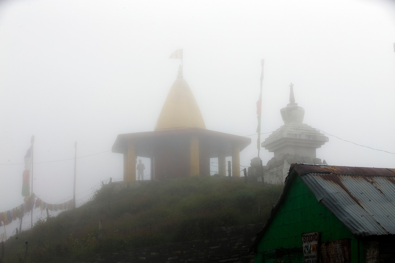 안갯속에서 어렴풋이 노란 불탑을 보는 순간 마날리에 거의 다 왔구나 하는 안도감이 밀려왔다. 저번에 마날리에서 Leh로 올라갈 때 첨으로 쉬어간 안면이 있는 간이 휴게소이었기 때문이다. 그때도 짙은 안갯속에서 보았는데 이번에도 안갯속에서 우리 일행을 맞았다.