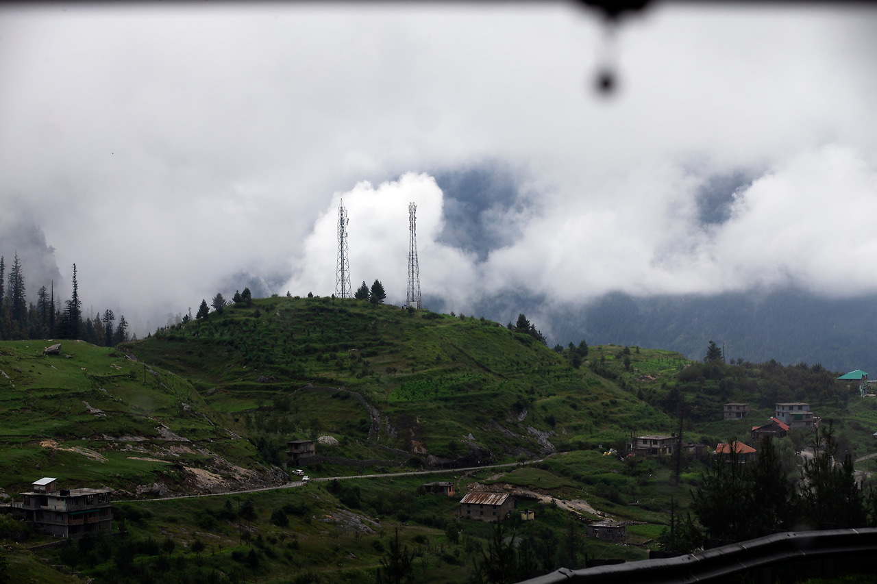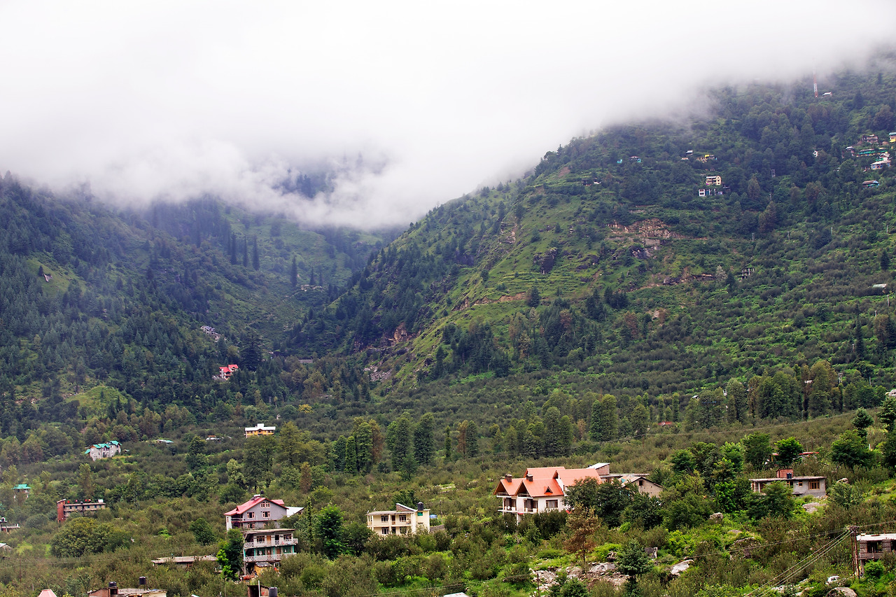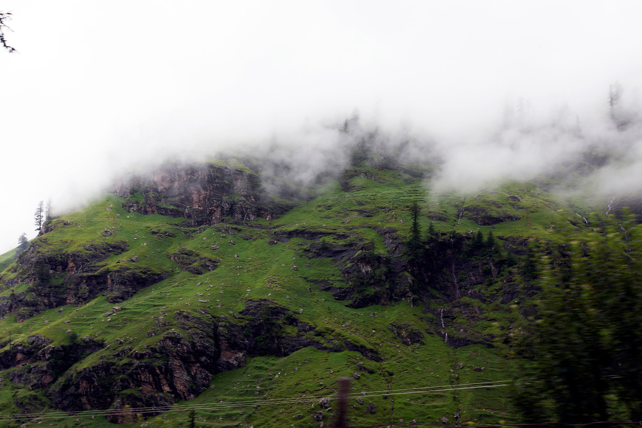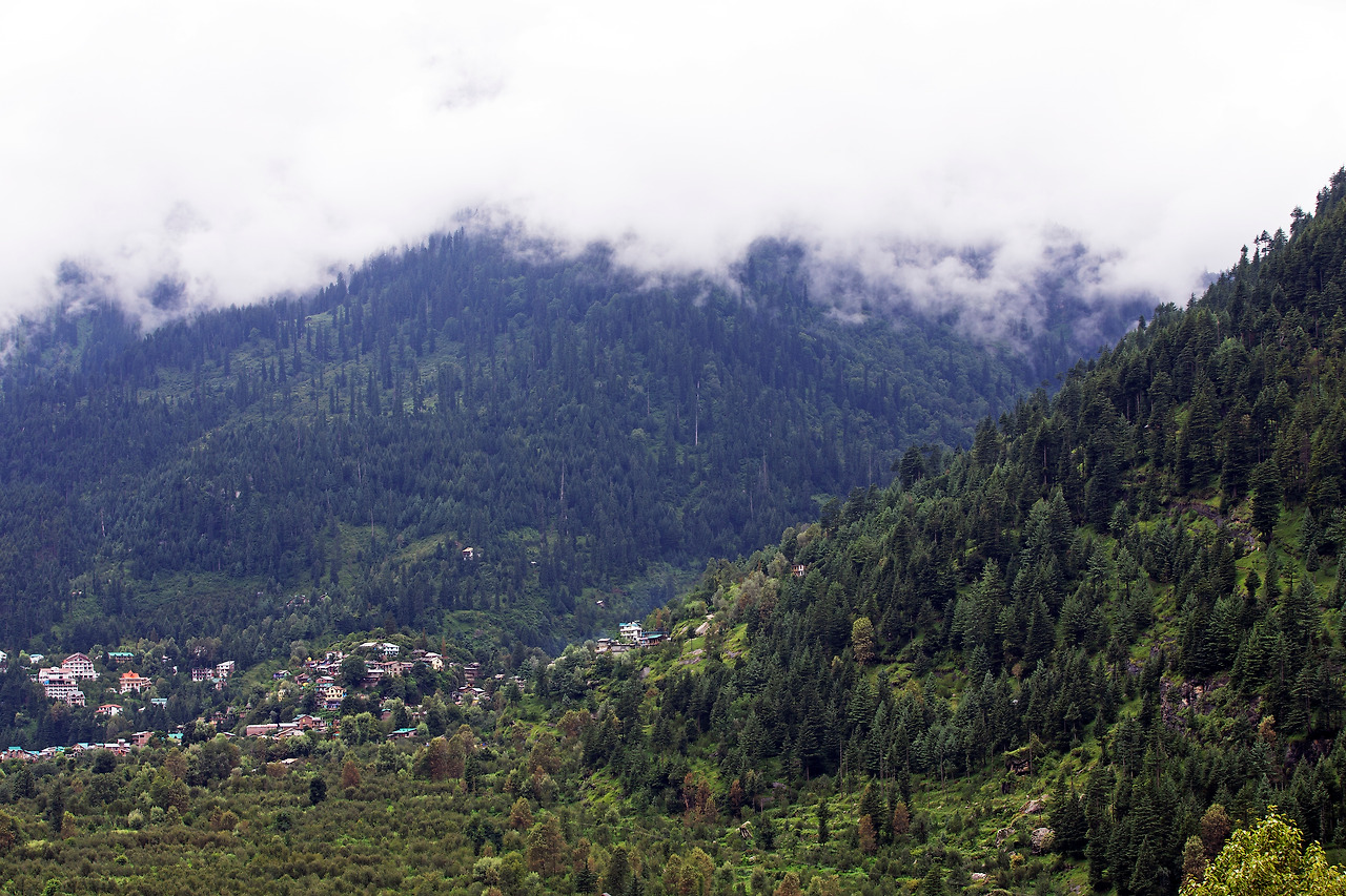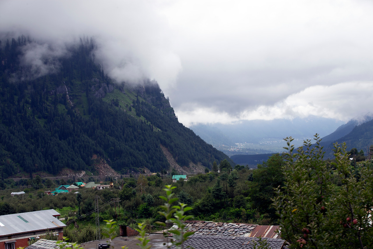 지독한 안개구간을 서행하여 산을 내려가니 초록색으로 단장된 오아시스 마을이 서서히 다가왔다. 북인도 오지가 삭막한 누런 사막이었다면 마날리 마을은 시원한 감로수가 줄줄 흐르는 오아시스라 할 수 있겠다. 비록 봉물을 가득 실은 쌍봉낙타를 끌고 북인도 오지를 통과한 대상 무리는 아니라 할지라도, 이틀 동안 메마른 먼지를 덮어쓰고 북인도 오지를 돌아다녔으니 어쩌면 그것에 버금 할 수도 있으리라. 좌우 시야로 속속 들어오는 청량한 초록색 산야가 상큼하게 다가왔다.