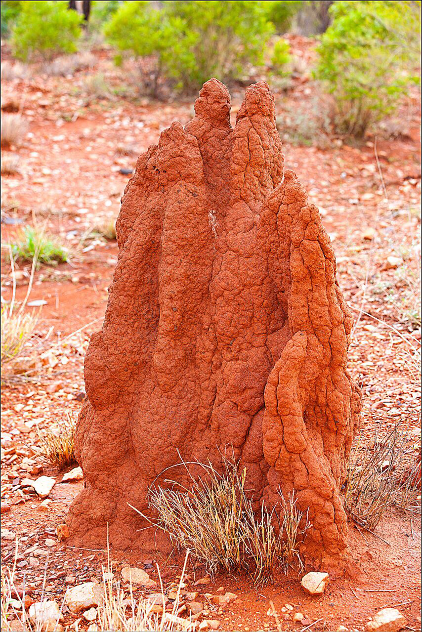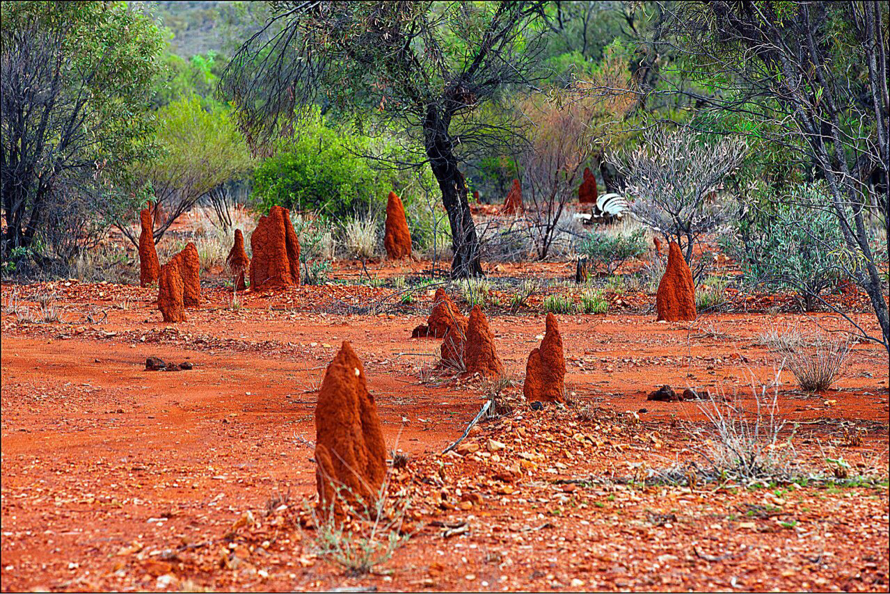 Mount Isa를 지나 좀 더 달리는데 처음보는 기묘한 형상이 숲속에서 하나둘 보이기 시작해서 차를 세우고 가까이 가 보았다. 마치 누가 손으로 흙을 빚어서 흙탑을 쌓아 놓은듯 보였다. 나중에 알고보니 이 걸작품의 작가는 인간이 아니고 흰개미였다. 미국에서도 Termite라고 부르는 흰개미는 나무를 갉아먹어 상하게해서 집 팔 때 꼭 Termite를 퇴치하는 케미칼 처리를 하였다는 확인서를 요구하는데 바로 그 흰개미다. 흰개미들이 흙을 먹고 토해 놓으면서 저렇게 탑을 쌓아 간다고 한다. 저런 흙탑이 지역별로 분산되어있는 것을 보면 토질에 흰개미들이 좋아하는 특수물질이 들어 있는 것 같다. 어떤 곳에서는 이런 흙탑에 티셔츠를 입히고 빵모자를 씌여서 멀리서 보면 사람이 서있는 것으로 착각하게 만들어 놓기도 한다.