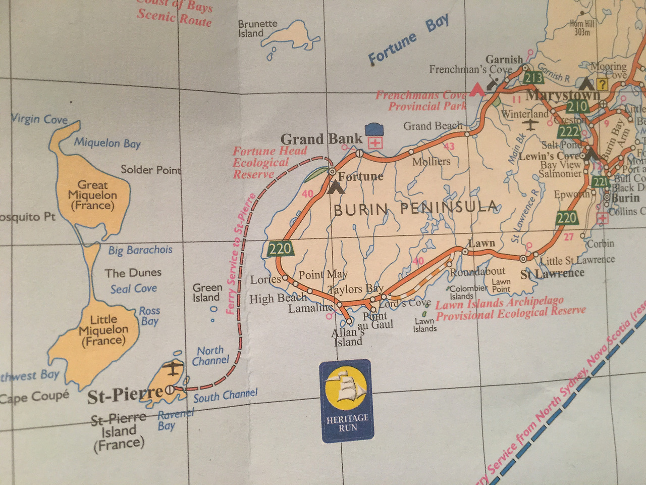 위 지도에 보면 오늘 저녁 내가 자고 간 마을 Marystown에서 조금만 내려가면 Grand Bank가 있고 그 마을 바로 밑에 Fortune이 있다. 여기에서 페리를 타고 St.Pierre & Miquelon이라는 섬으로 갈 생각인데 여기에 무엇이 있는지는 잘 모르겠지만