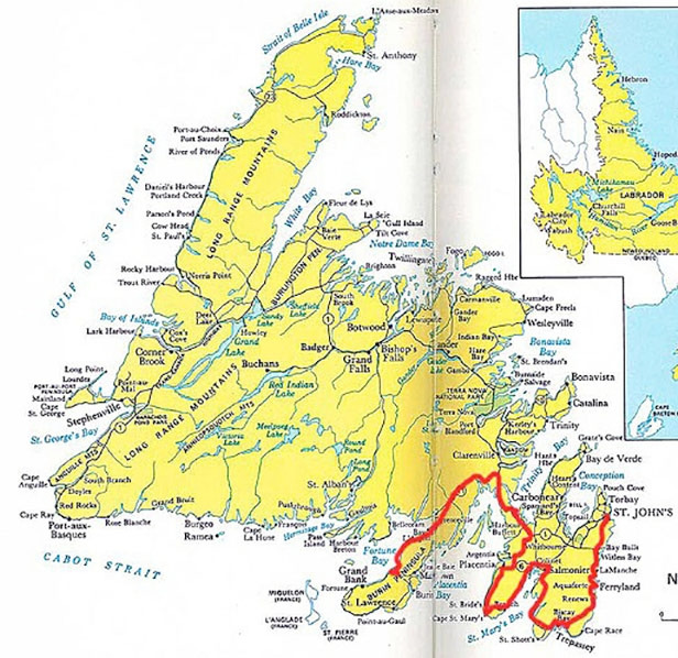 섬의 동쪽 해안 중간쯤 되는 곳의 지명인데 1652년 정착된 마을이라고 한다. 위에서 본 바와 같이 1632년에 정착한 32명의 이주자들이 약 20년 후가 되어서야 Calcert마을을 만든 셈이다. 근처에 흩어져 있는 대부분의 작은 마을들이 그 당시에 이주한 개척자들에 의하여 형성되었던 것 같다. 뉴펀들랜드란 지명은 1497년 영국 헨리 7세의 명을 받은 이태리 탐험가 및 항해가인 John Cabot이 아시아 항로를 개척하기 위하여 항해하다 발견한 땅으로 새롭게 발견한 땅(New found land)이라고 해서 뉴펀들랜드라고 하였다.