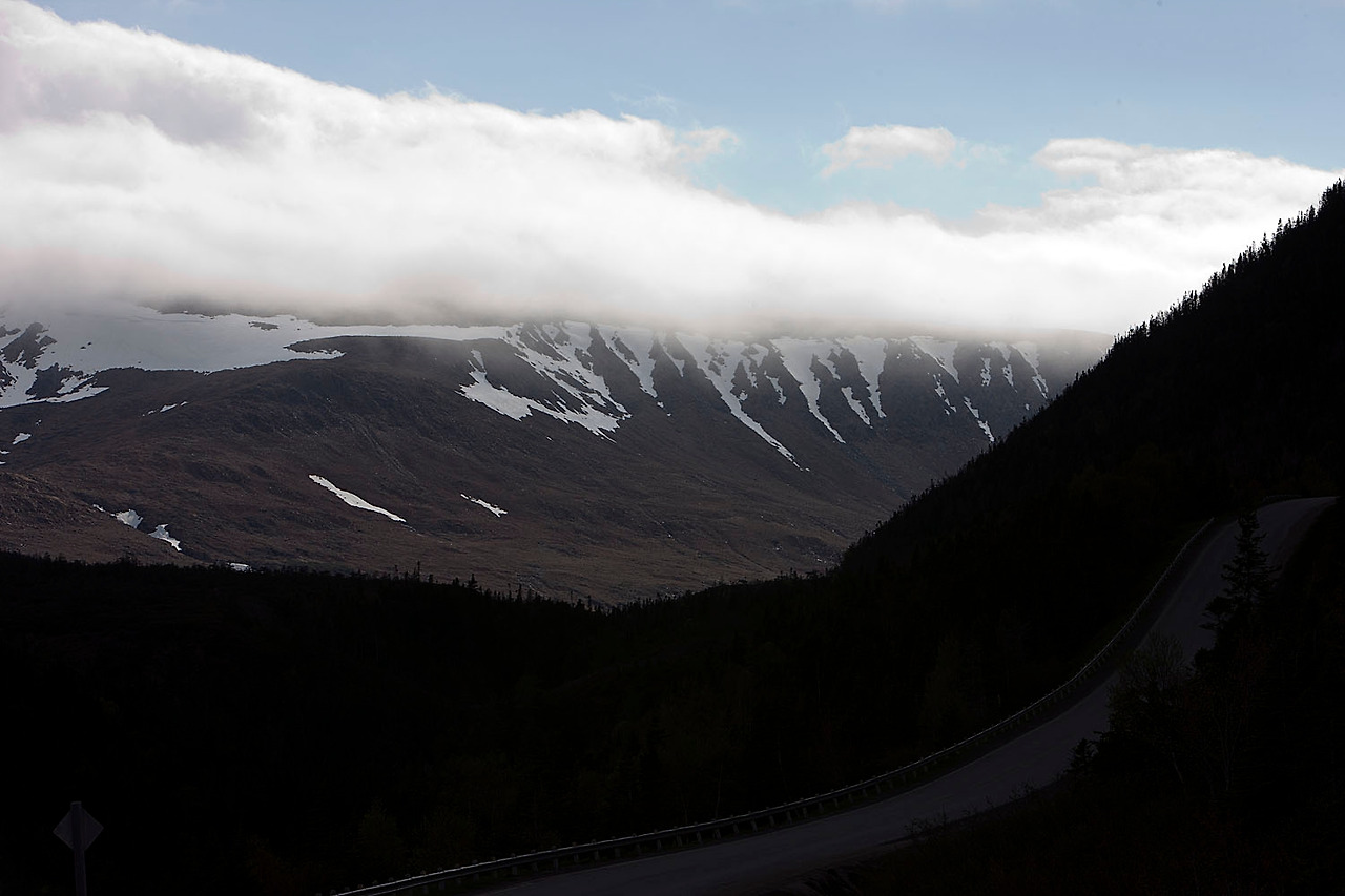 국립공원 아래쪽 바닷가에 접한 마을 Trout River로 가는 길에서 본 산 정상에는 아직도 눈이 덮여있다. 곧 여름 장군이 쳐들어올 6월인데도 저 멀리 보이는 산 정상에는 아직도 하얀 갑옷을 걸친 동장군이 버티고 있었다. 기나긴 추운 겨울 동안 그토록 맹위를 떨쳤으면 족하지 무엇이 아쉬워 미련을 버리지 못하고 아직도 떠날 수 없는 것일까.