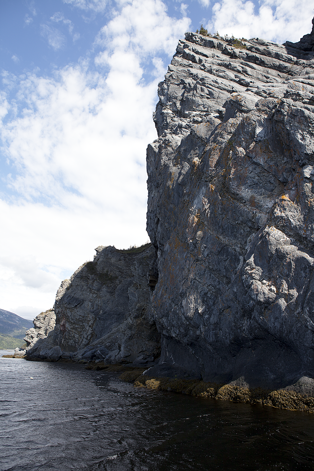 가이드 말로 우리가 투어하고 있는 Bonne Bay의 굴곡도 몇 십억 년 전의 빙하기 시대의 빙하가 수백만 년 동안 움직이면서 파 놓은 계곡으로 여기에 바닷물이 채워져서 형성되었다고 한다.
