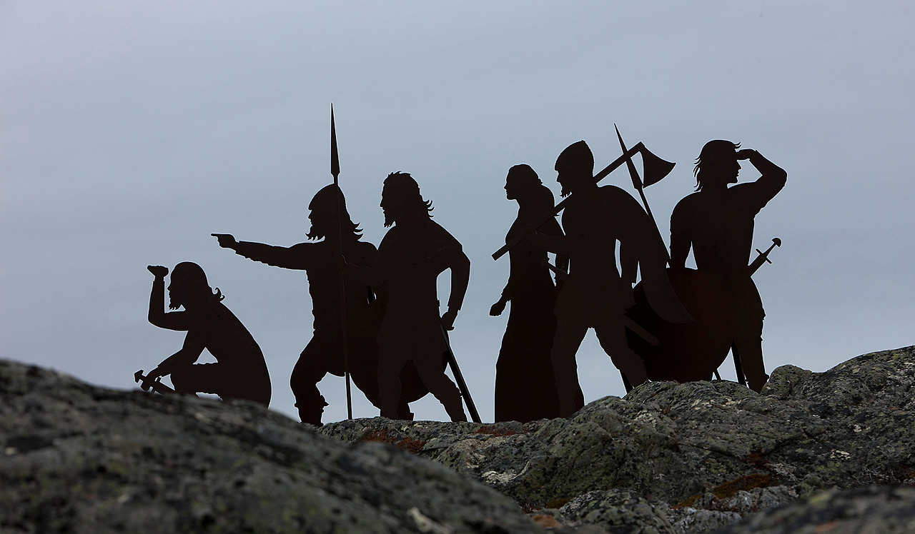 가까이 가서 보니 철판으로 단면만 만들어 세운 조형물이었다. 내가 보고 있는 방향이 100% 정면이다. 다른 방향에서 보면 이상하게 보인다. 여자가 있는 걸 보니 Ericsson 여친인가 집사람인가? 도끼 메고 있는 자가 Ericsson 같다. 그 근거가 아이슬랜드 동상에도 Ericsson만 칼과 도끼를 들고 있고 나머지는 칼만 들고 있기 때문이다.