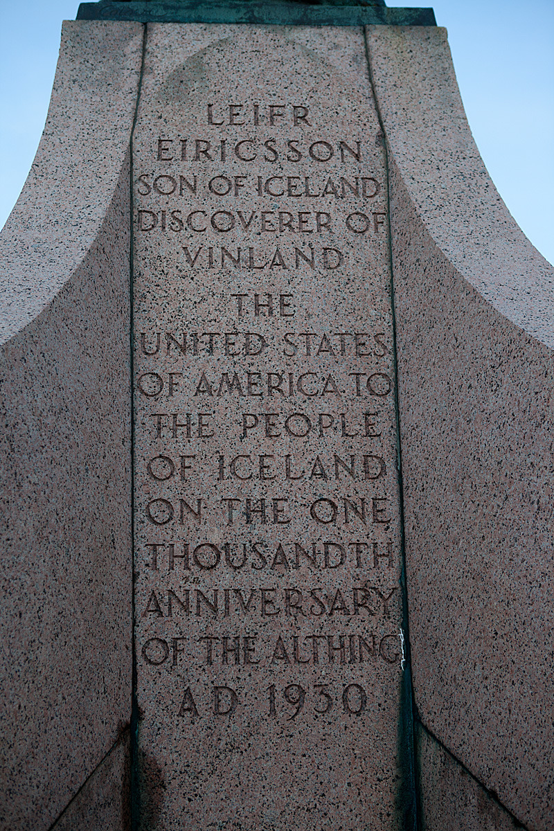 위 동상 밑면에 새겨진 문구를 부연 설명하면 이렇다. 1930년에 미국 정부가 아이슬랜드 정부에 알팅그(Althing) 1000주년을 기념하여 이 동상을 기증한다는 것으로, 알팅그(Althing)는 아이슬랜드 말로 의회(국회)를 뜻하는데, 세계사에서 AD 930년에 세계 최초로 의회가 결성된 곳이 바로 아이슬랜드 레이캬비크라는 것이다. 그래서, 세계 최초 의회 결성 1000주년을 기념하여 미국 정부가 여기에다 동상을 세워준 것이다.