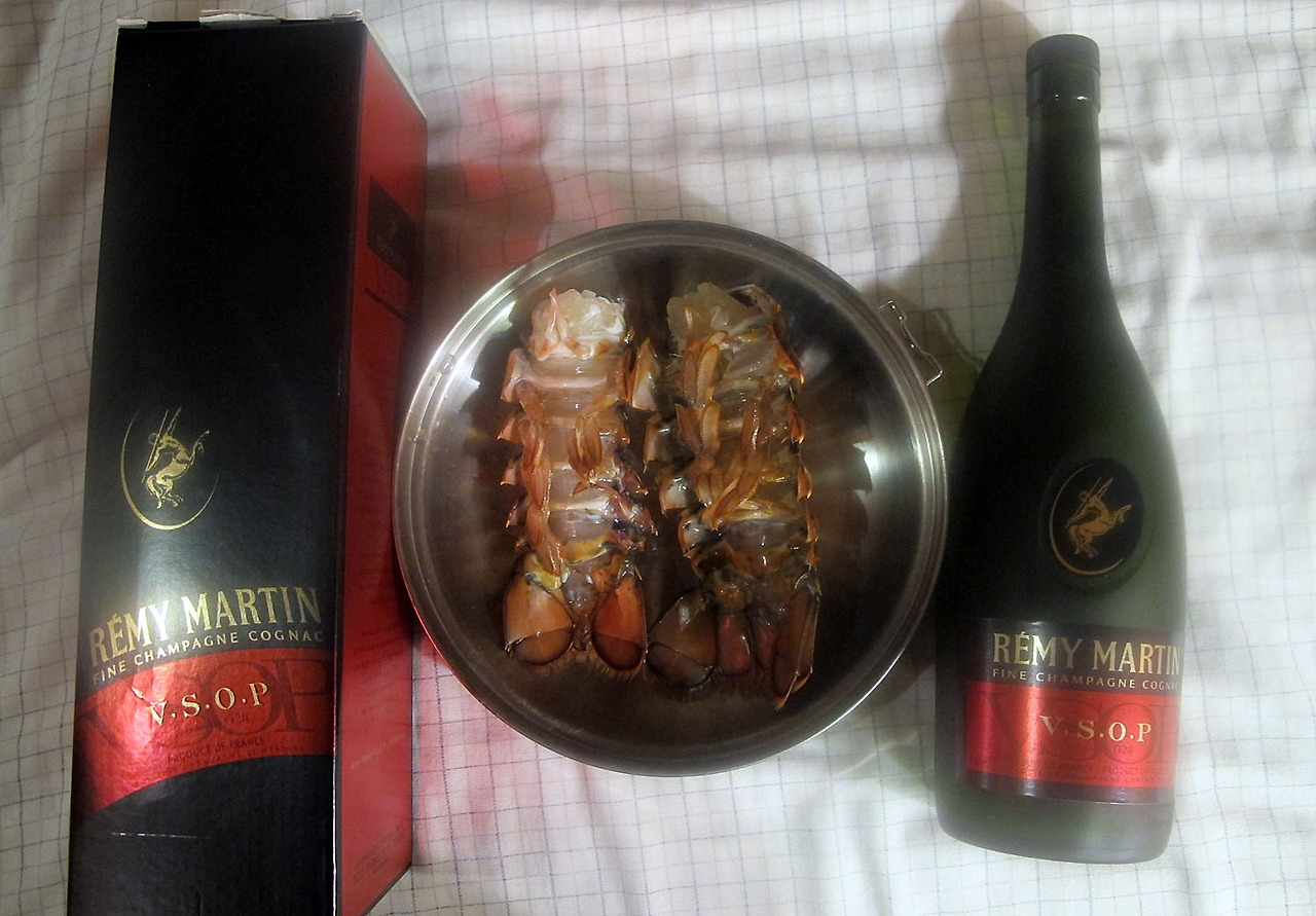 적포도주가 없어서 비싼 레미마틴의 안주로 바닷가재 꼬리 생회를 해서 한잔 들었는데, 꼬리가 아주