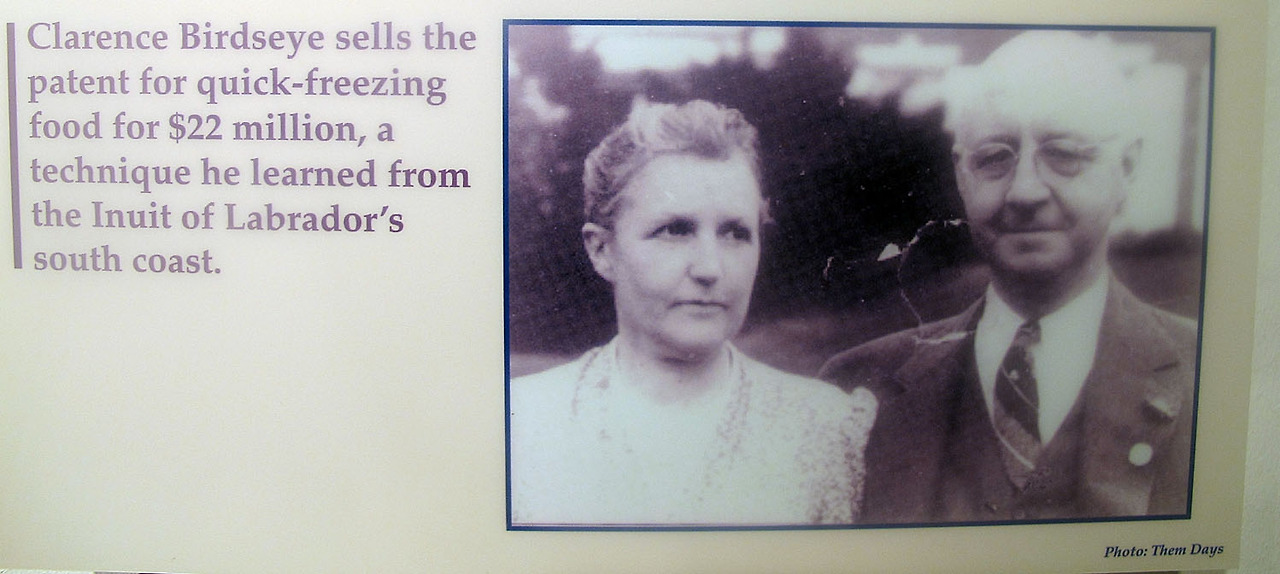 - 1929년: CLARENCE BIRDSEYE란 영국인 작자가 원주민 INNUIT들한테서 식품 급속냉동 법을 배워서 그 특허를 팔아먹었는데 당시 돈 2천2백만 불에…… 그 당시 그 돈이면 요즘으로 치면 천문학적인 수치다. 나는 그보다 82년 늦게 간 죄로 팔아먹을 것도 하나도 없는데……. 혹시 담에 가서 웅담이라도 수집해서 웅담 장사라도 해 볼까나?