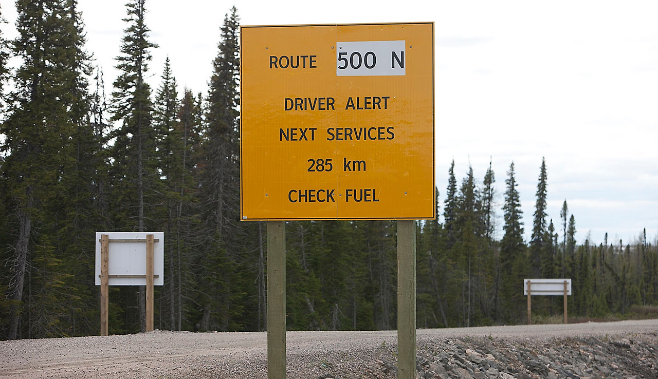 500번 북향 도로 285km 이내에는 주유소가 없다는 푯말이다. 떠나기 전 기름탱크를 잘 채워야 한다. 뉴펀들랜드로 돌아가는 길에 이걸 한번 잘못 판단해서 한 밤중에 속을 부글부글 끓인 적이 있었다.
