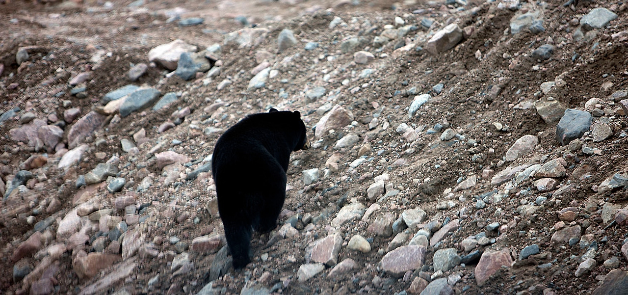 좀 더 가까이 가서 확인해보니 흑곰이다. 차가 달려가도 별로 개의치 않는 모습이다.