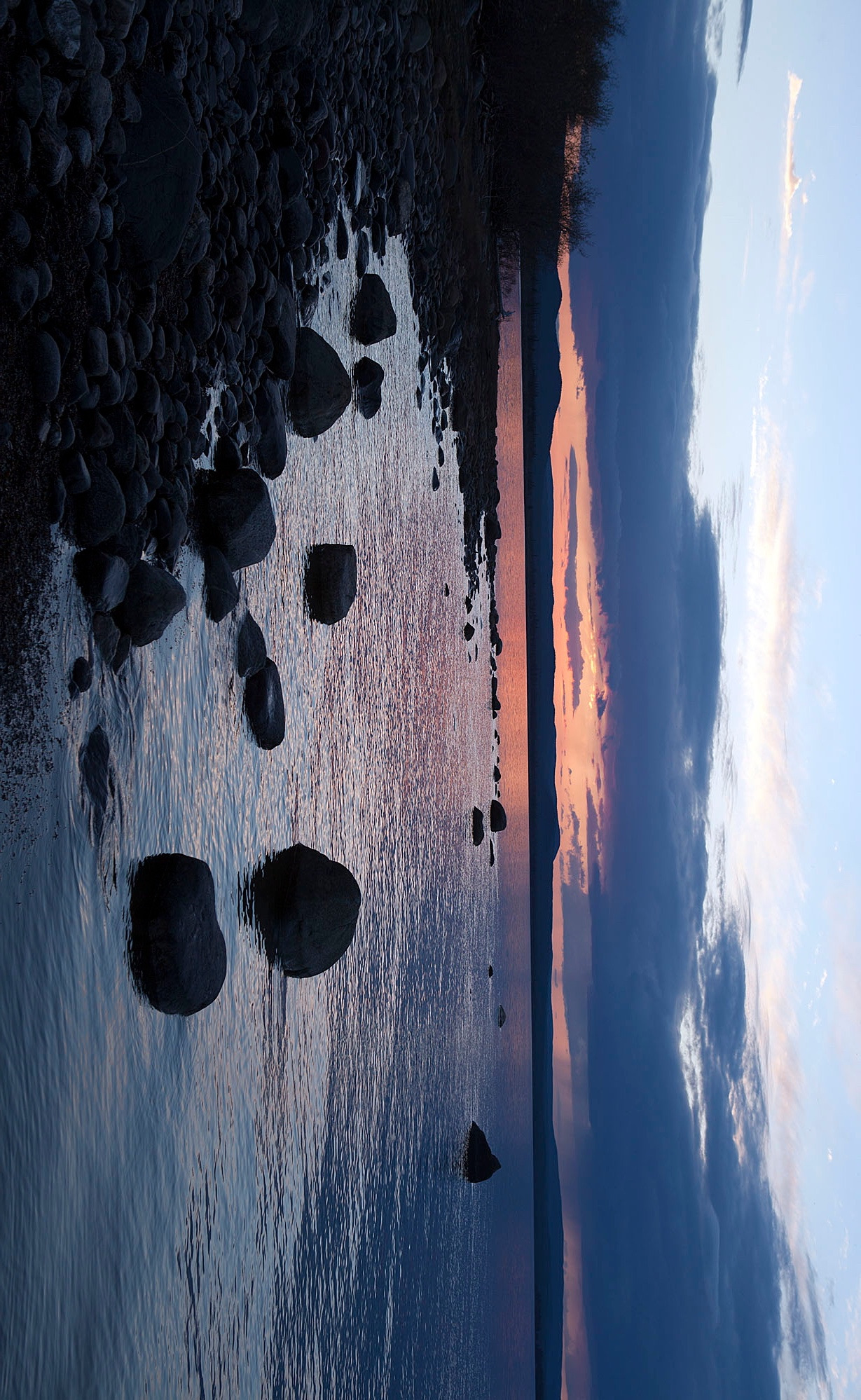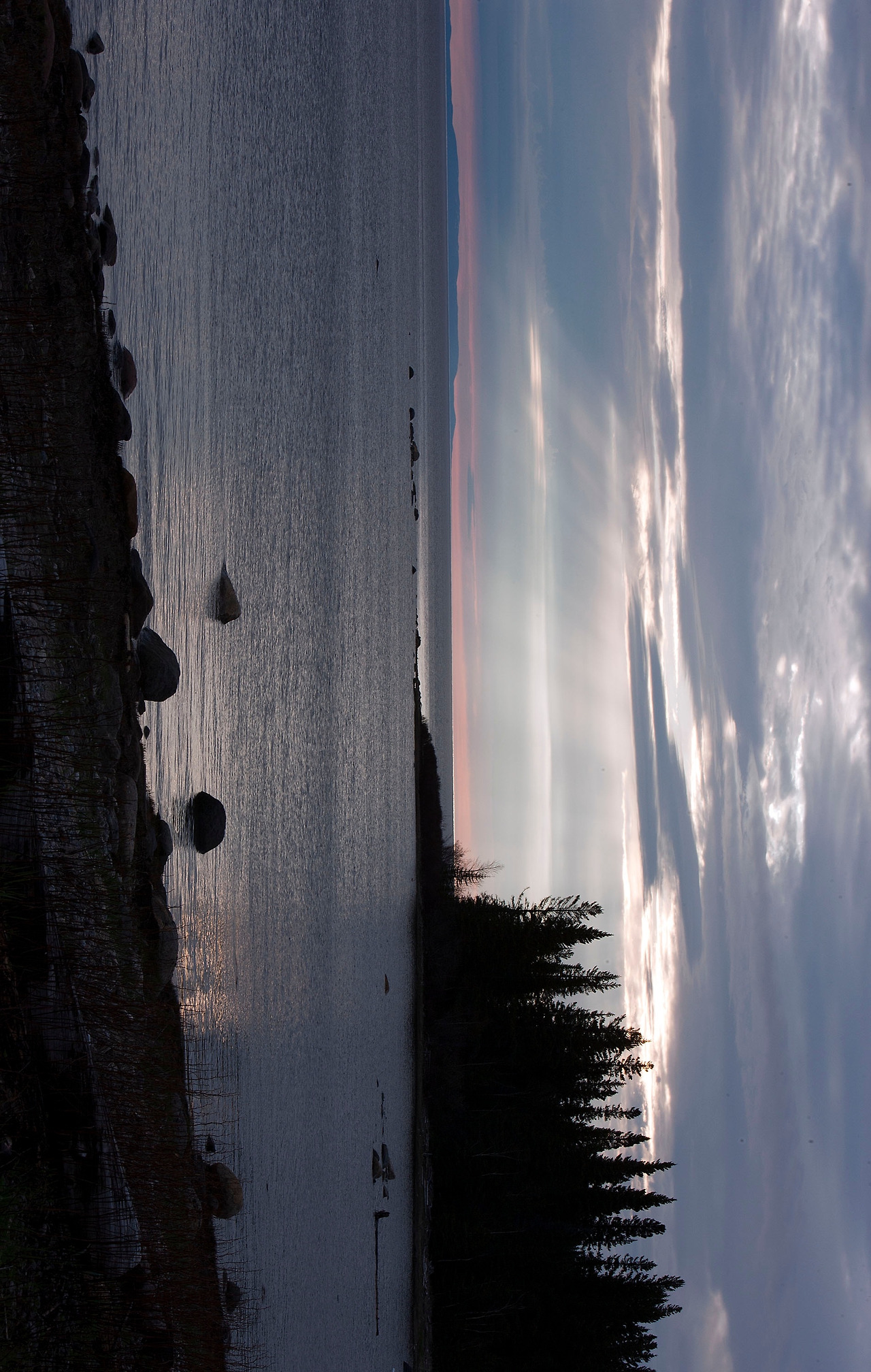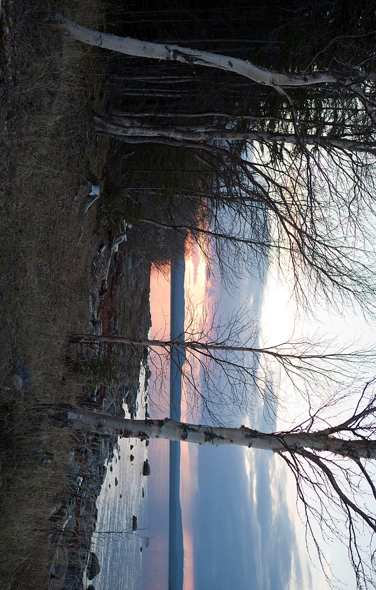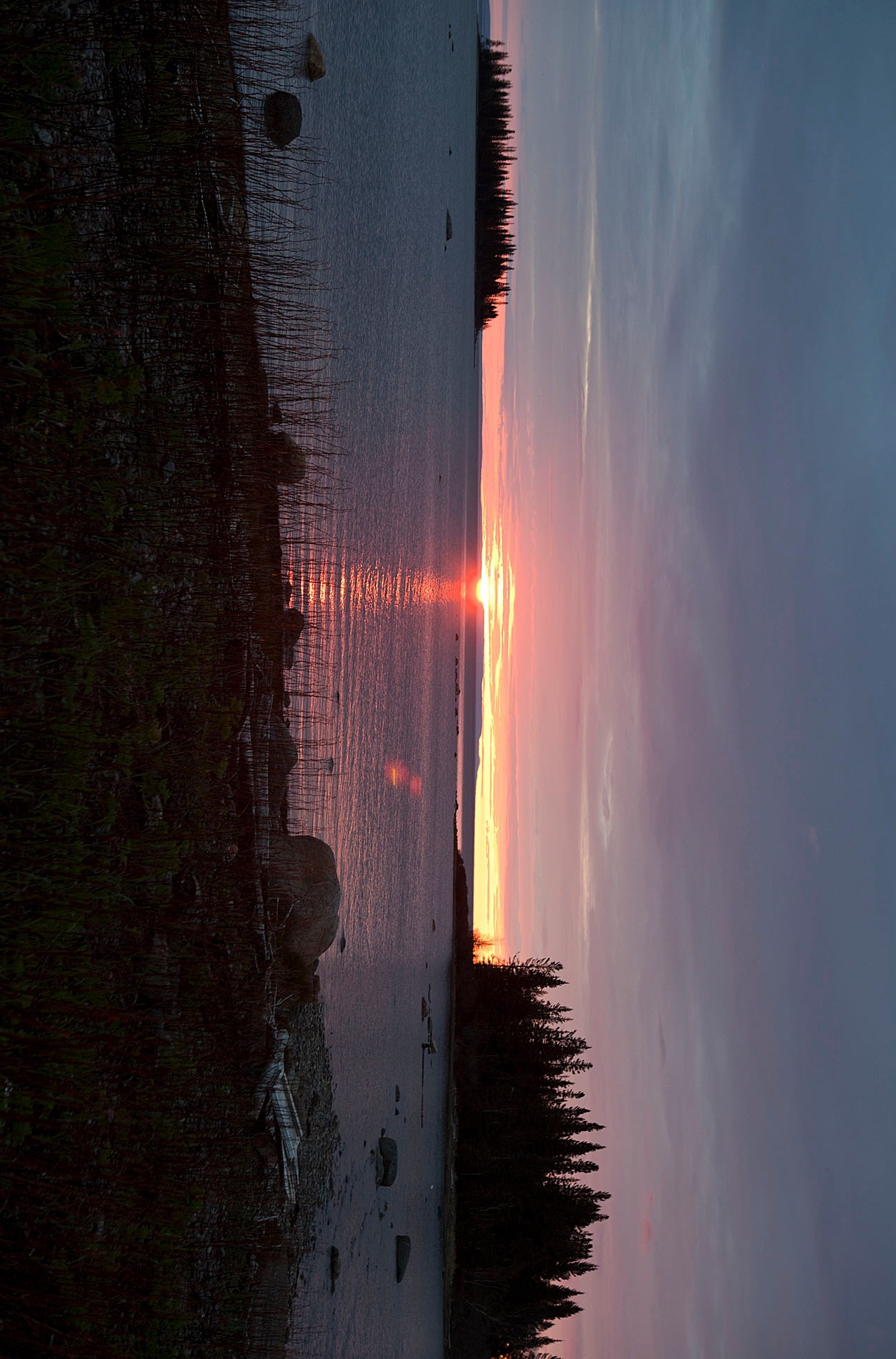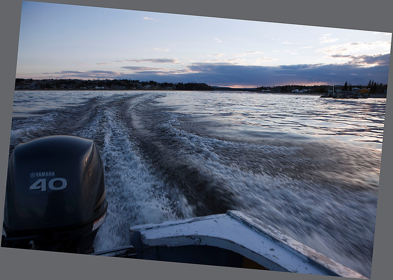첫날에 들어와서 잡은 저녁노을. 집 뒤쪽은 숲이고 좌우 앞이 호수다. 혼자 사진 찍으러 밖으로 나오니 고요함으로 주변의 풍광은 바로 순수 그 결정체다. 울어대는 새도없고, 심술궂은 바람 소리도 없어 귀를 자극하는 소리란 없는데, 간혹 호수 물이 자갈밭에 자박 거리는 소리만 들린다. 여기는 북반구에 가까워 해는 8시 넘어서 지지만 하늘은 밤 10시까지 환하다. 영감님은 지금까지 살아오면서 대개 저녁 10-11시경에 잠자리에 들면 새벽 4-5시경에 일어나서 활동을 시작하는데 그 이유가 Trapper는무조건 아침에는 일찍 일어나야 하니까 밤에 일찍 짐 자리에 들어야 한다는 것이다. 영감님도 과거 40년간은 Trapper로 살아왔다 하니 Trapper 생활에 있어서는 PRO라 할 수 있겠다. 덕분에 나도 다음날 아침 5시에 눈을 떠서 간밤에 처 놓은 그물에 고기를 건지러 영감님과 같이 배를 타고 나가 보았다.