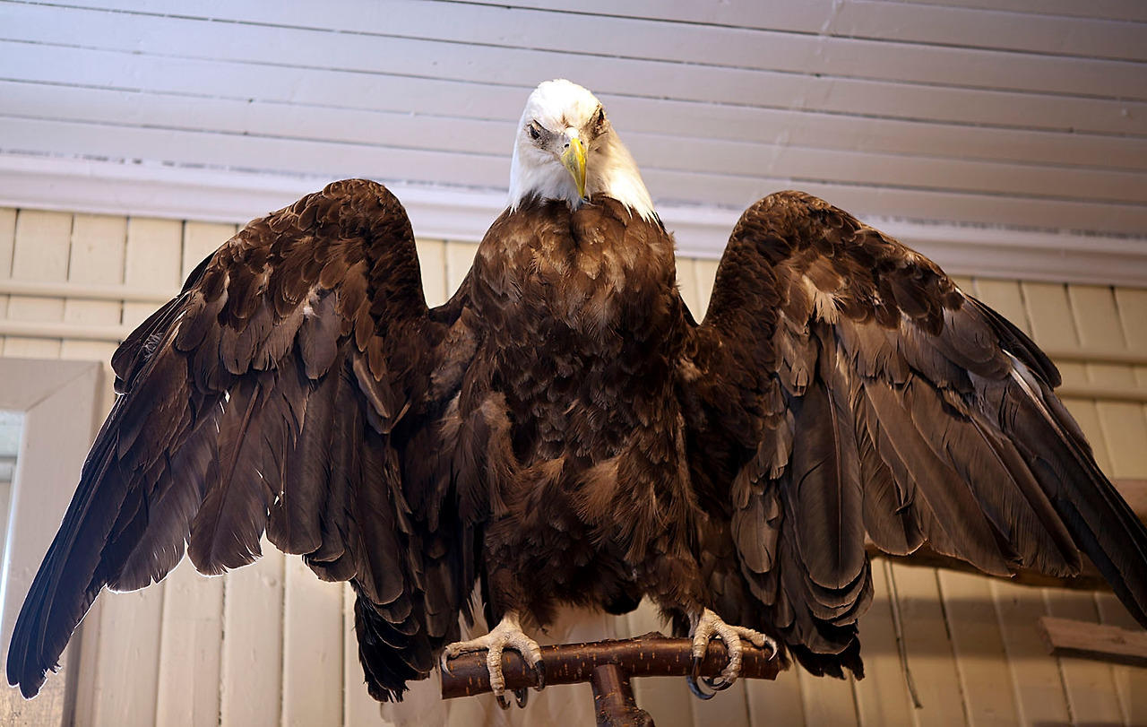 BALD EAGLE(미국의 국조) 박제. 이외에도 곰, 여우, 담비 등 여러 동물들의 박제가 가득하다.